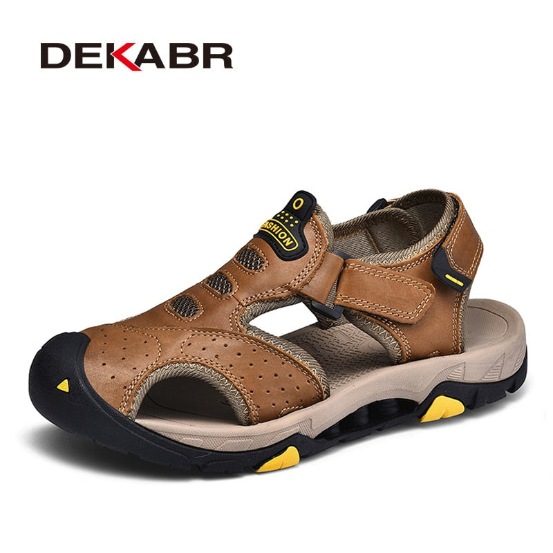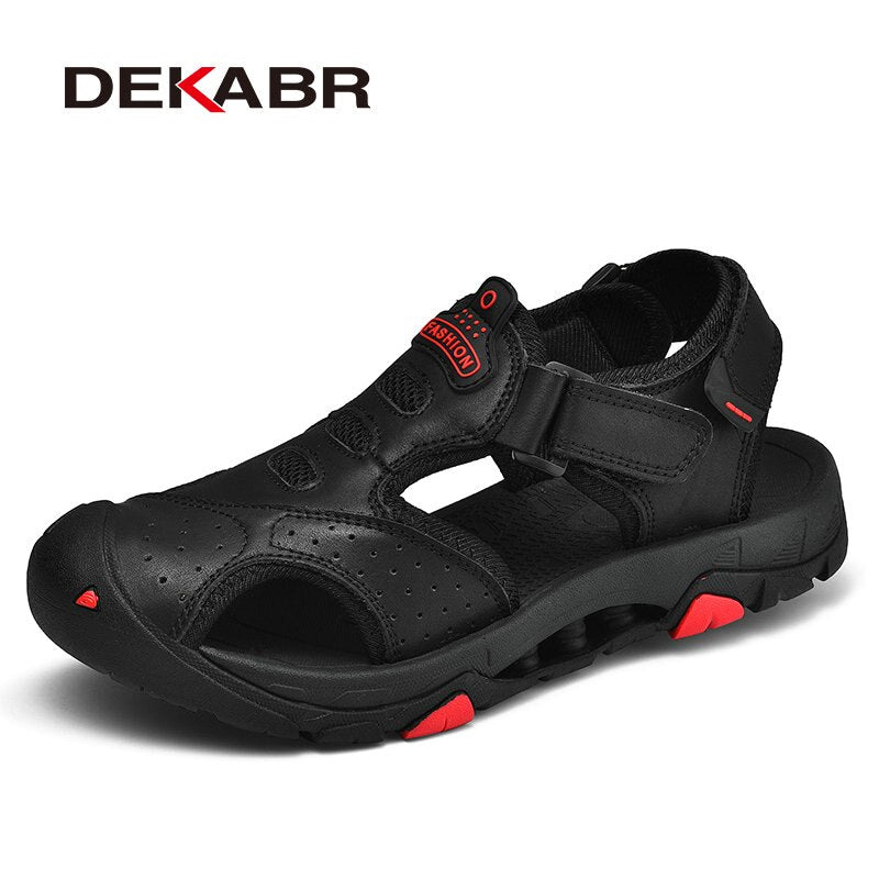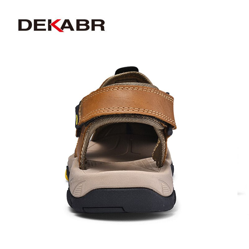 DEKABR Men's Soft Beach Shoes Summer Men Outdoor Genuine Leather Sandals Walking Breathable Slippers Lightweight Outside Shoes