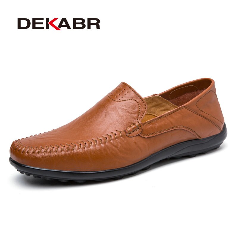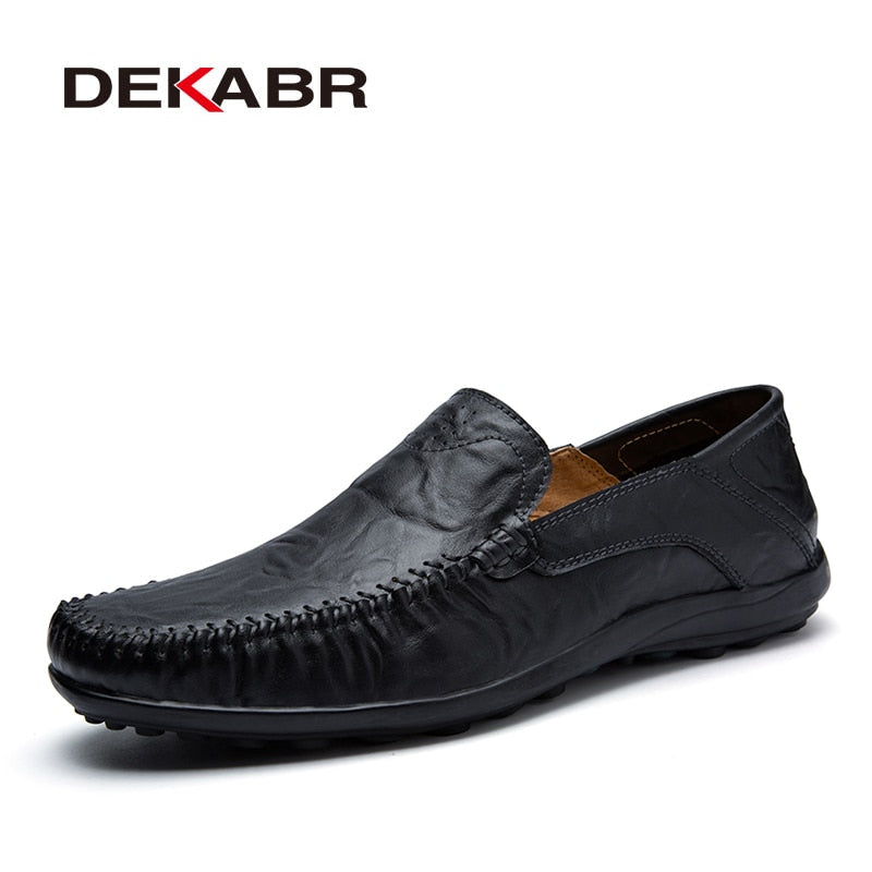 DEKABR Soft Leather Men Loafers New Handmade Casual Shoes Men Moccasins For Men Split Leather Flat Shoes Big size 38-47