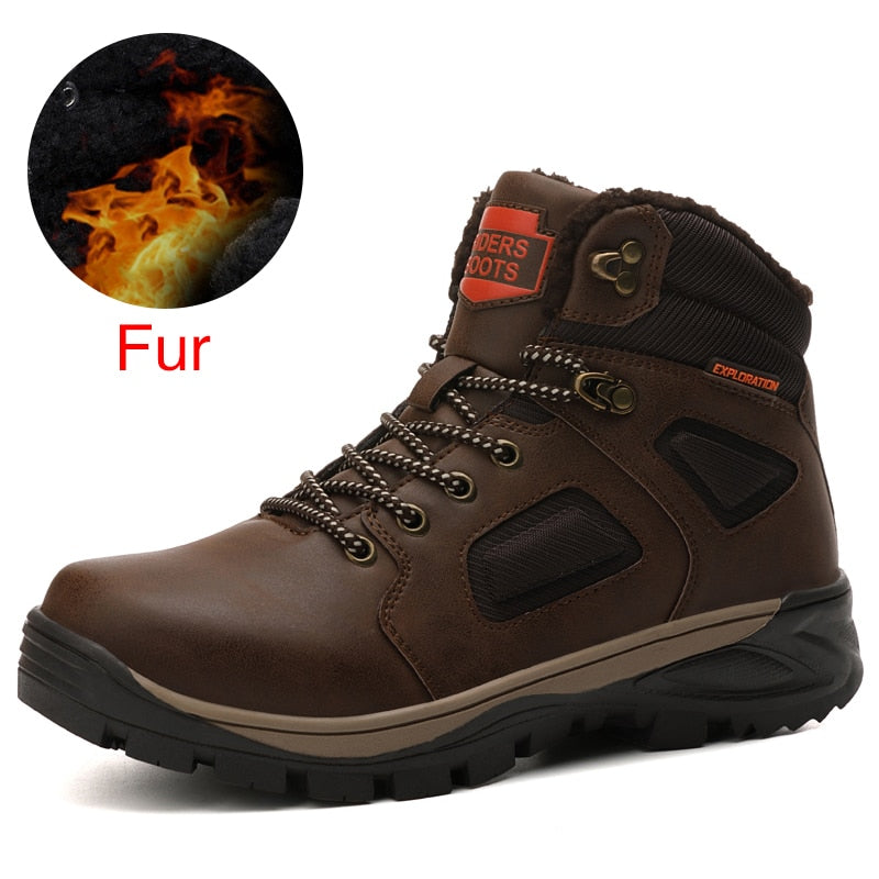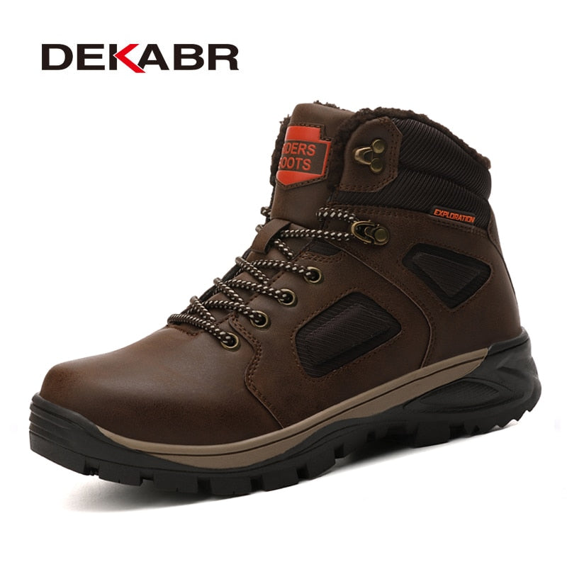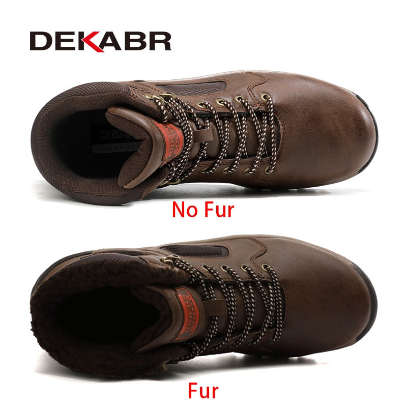 DEKABR Split Leather Men Waterproof Warm Boots Men Casual Shoes Fashion Ankle Boots For Men High Top Outdoor Winter Men Boots