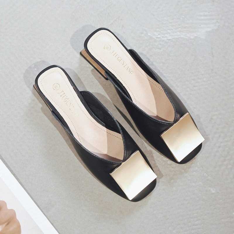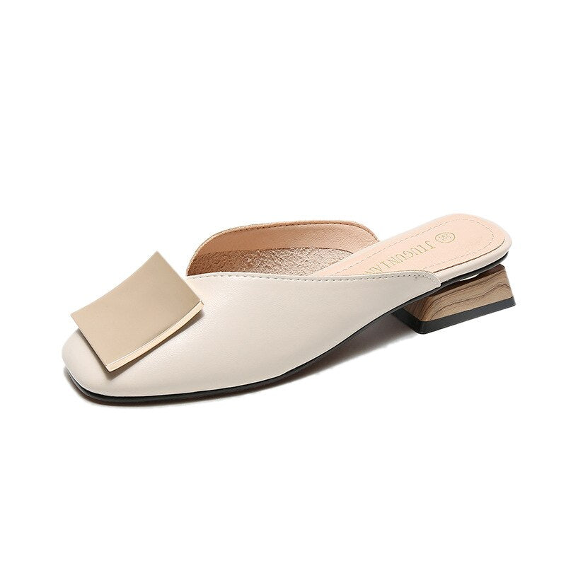 Designer Women Mules Pumps Trend Square Buckle Wooden Block Elegant Office Party Ladies Casual Shoes Summer Women Slippers