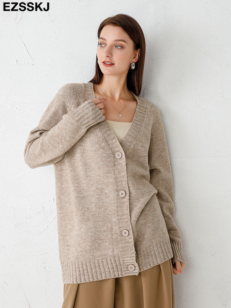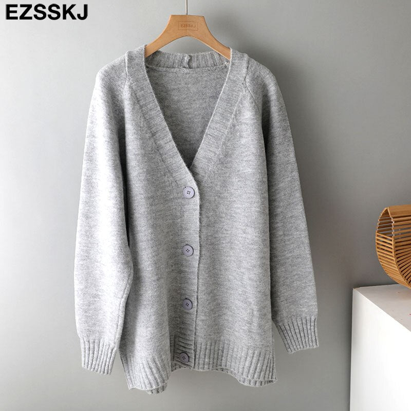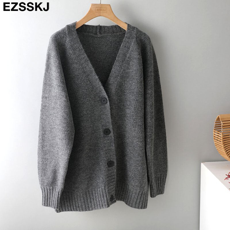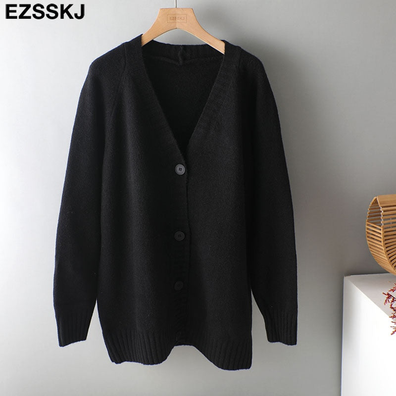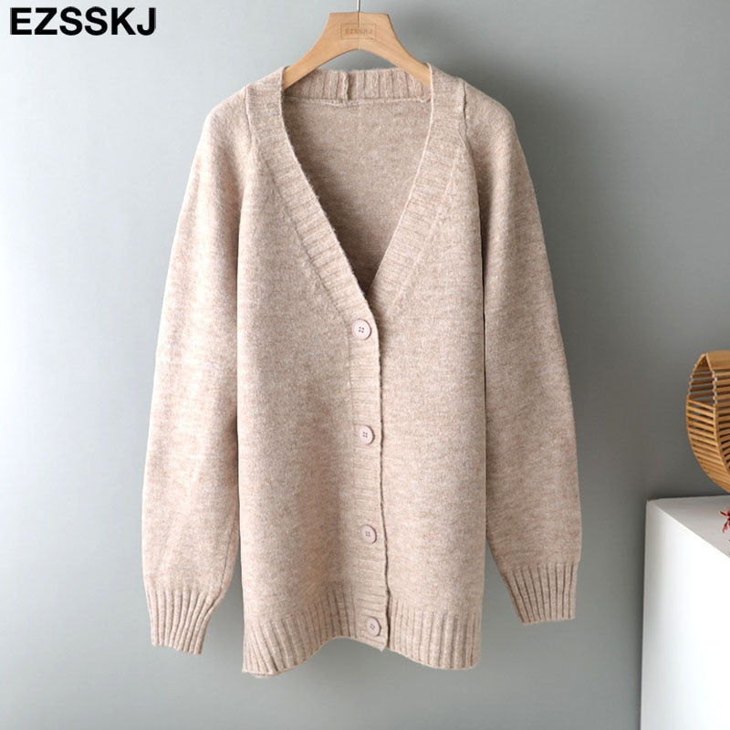 Ezsskj spring autumn sweater long sweater Cardigan Women v-neck Knitted Jacket Cardigan Sweater Female elegant Coat out wear
