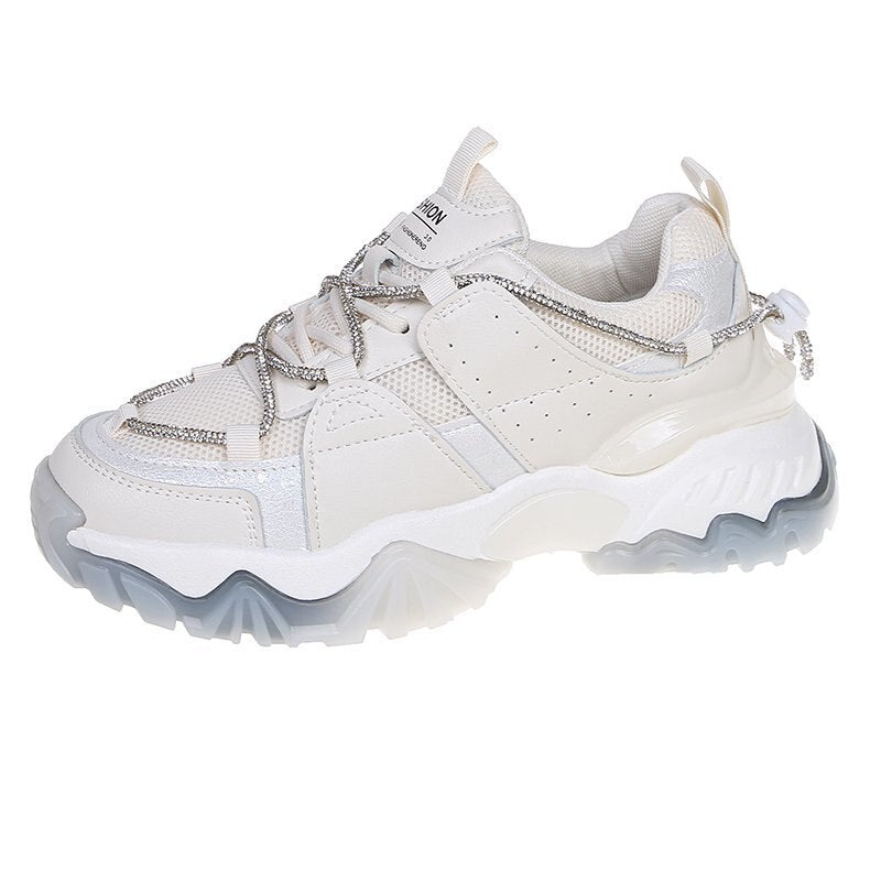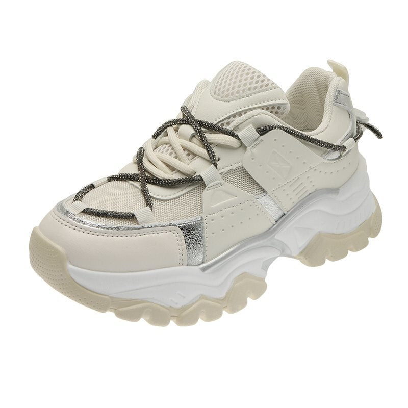 Fashion Mesh Chunky Sneakers Casual Shoes Women Sneakers Comfortable Thick Sole White Flats Platform Sneakers Round Toe Lace Up