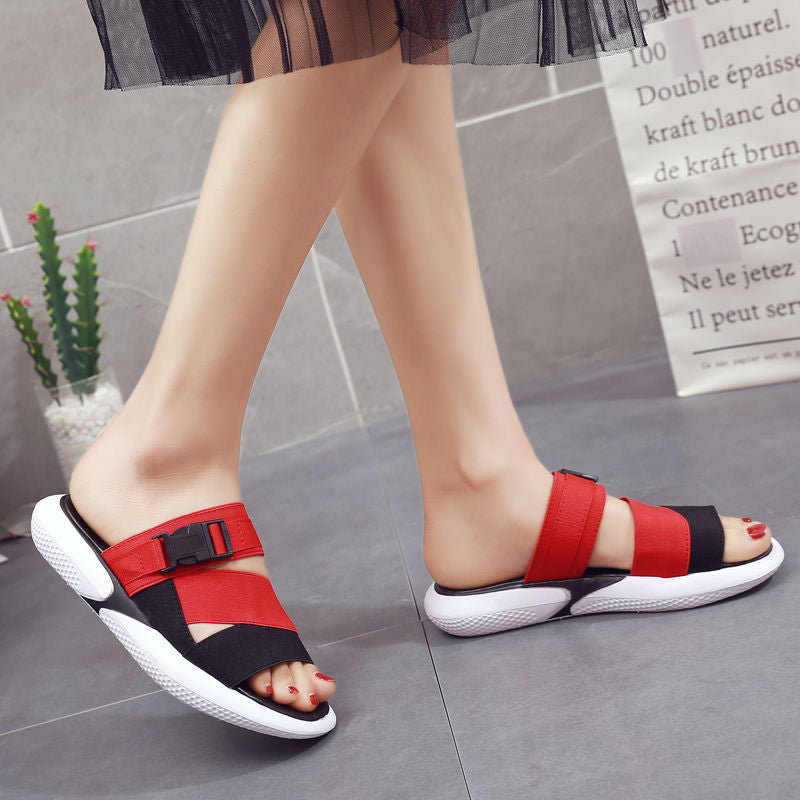 Fashion open toe sports sandals T-shaped buckle thick heel platform shoes 2020 women's summer flat casual shoes women's slippers