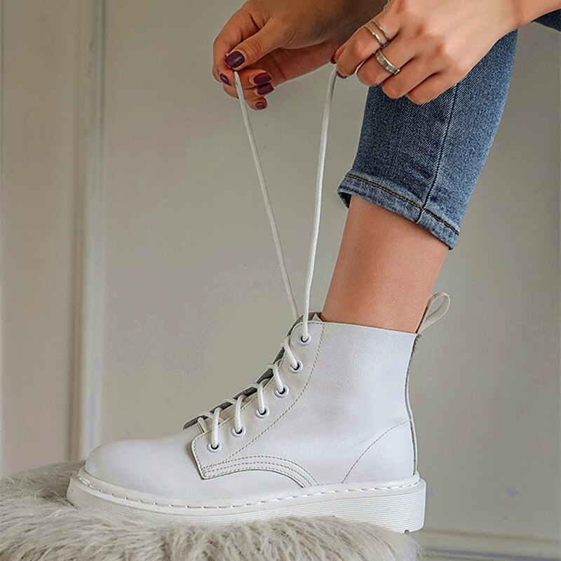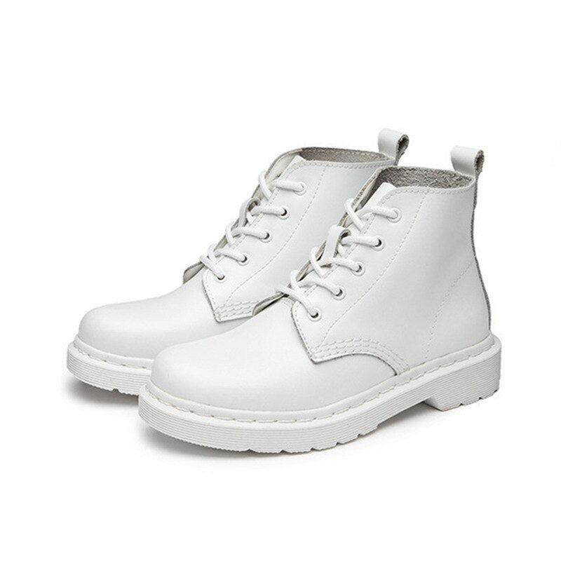Fashion Solid White Women Ankle Boots Autumn Winter Split Leather Platform Shoes Female Non-Slip Punk Ladies Motorcycle Boots