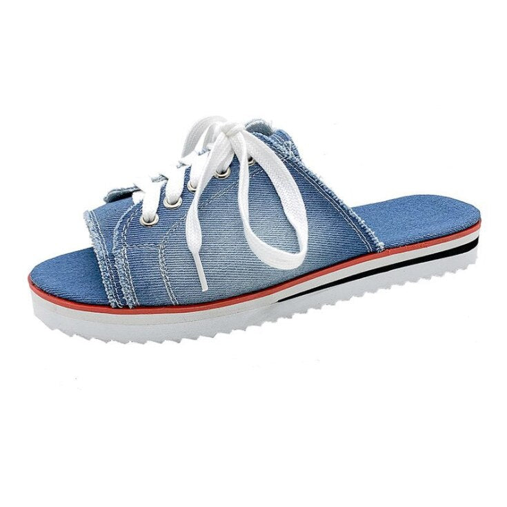 Fashion Women Peep-toe denim Sandals Breathable Summer Shoes Comfortable Casual Slippers Ladies New Flat Shoes Zapatos Mujer