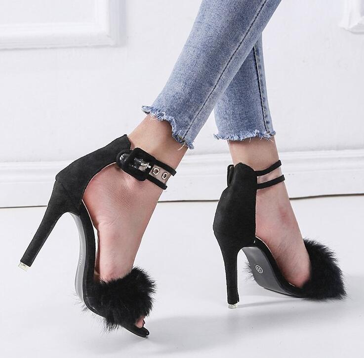 Faux Fur Women Sandals High Heels Sexy Snakeskin Pattern Women High Heels Pumps 11cm Thin Heel Women
