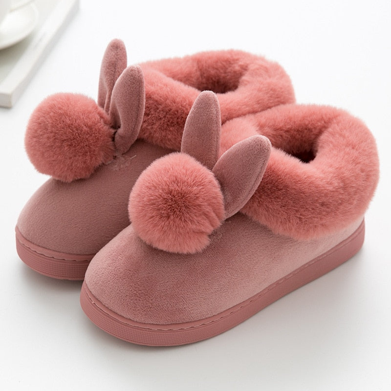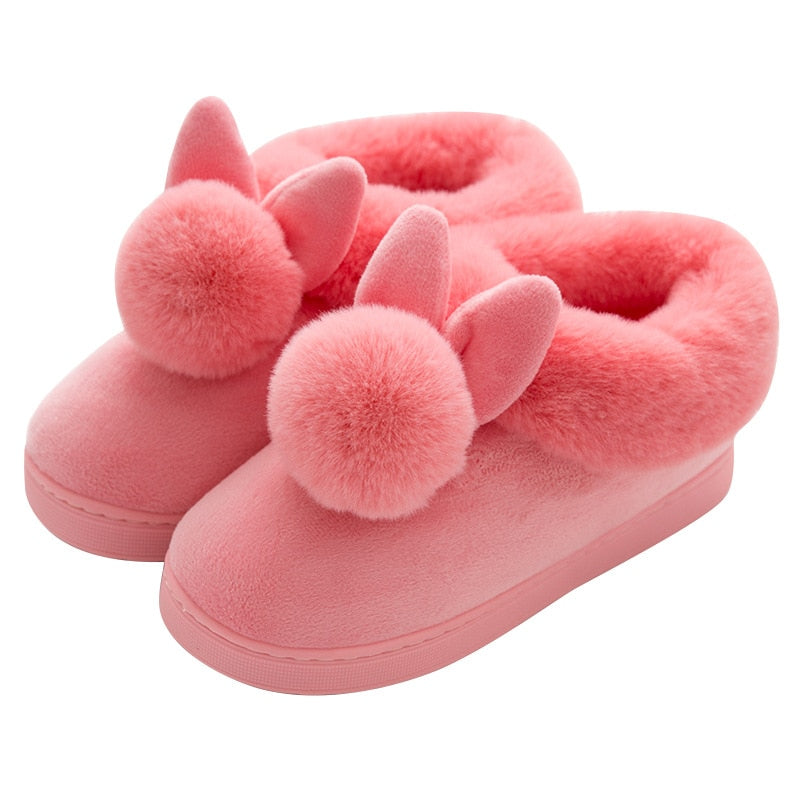 FONGIMIC Women Winter Slippers Warm Cute Cotton Slippers Ladies Autumn Velvet Home Floor Thick Bottom Cartoon House Rabbit Shoes