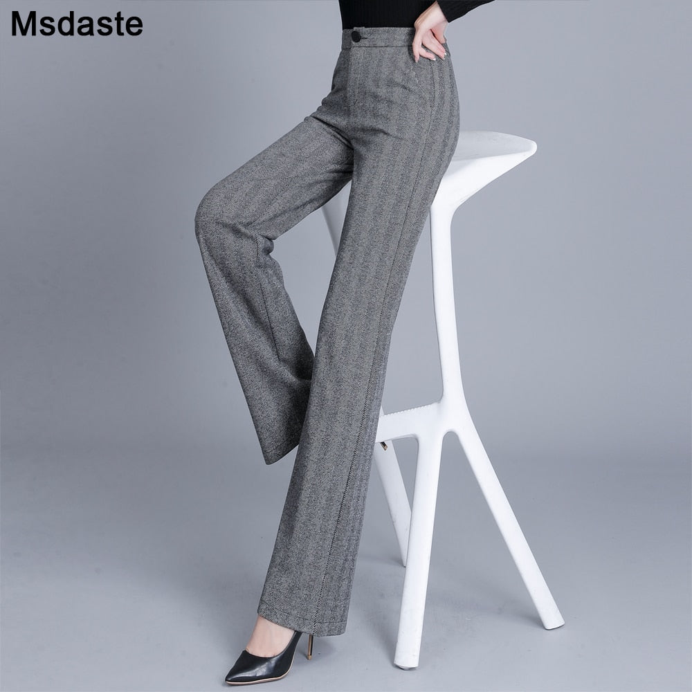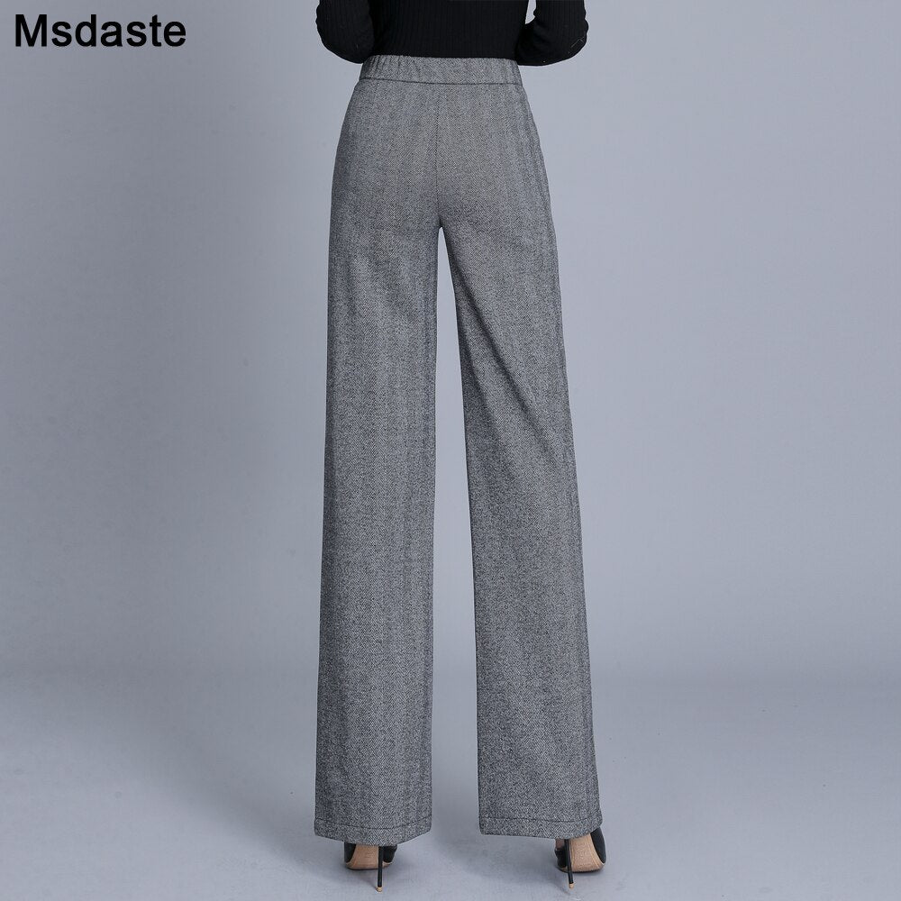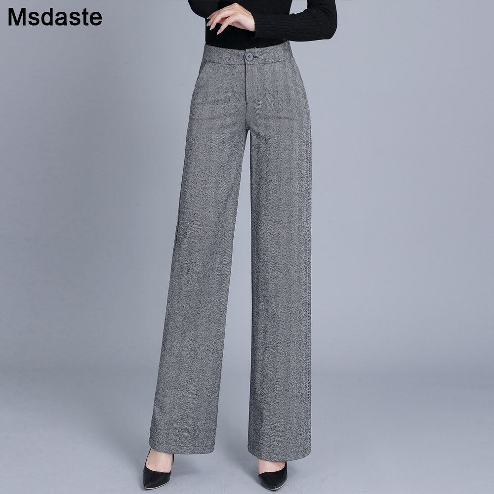 Formal Pants Office Work Woolen Wide Leg Pants Autumn Winter High Waist Full Length Straight Female Trousers Office Lady Pants