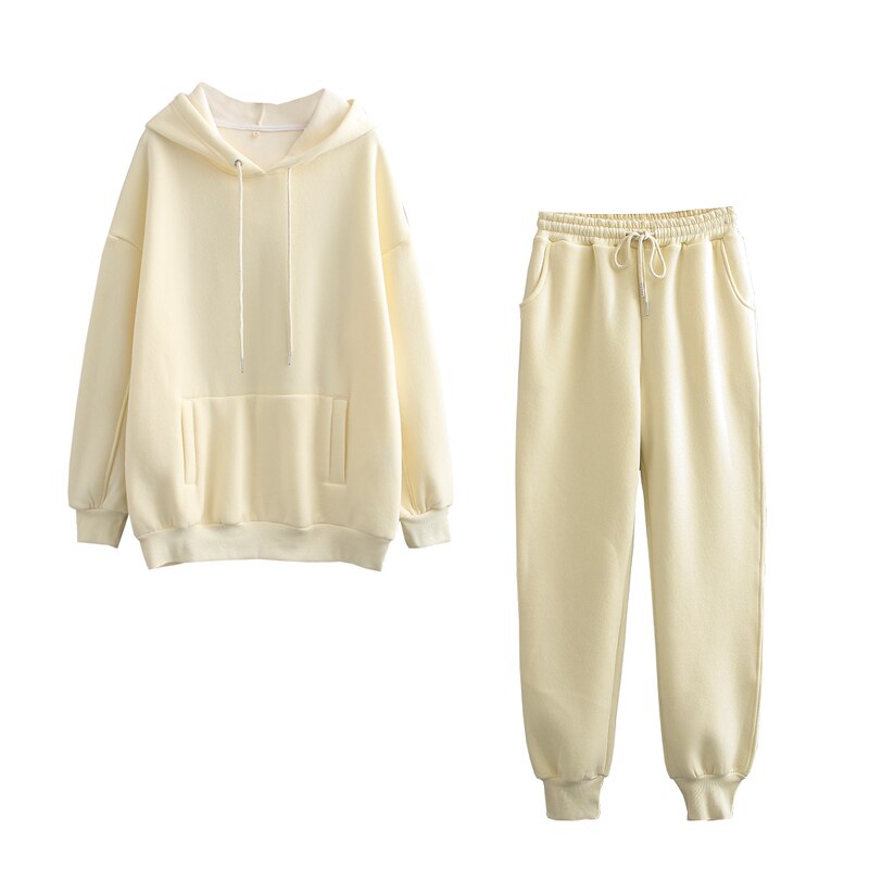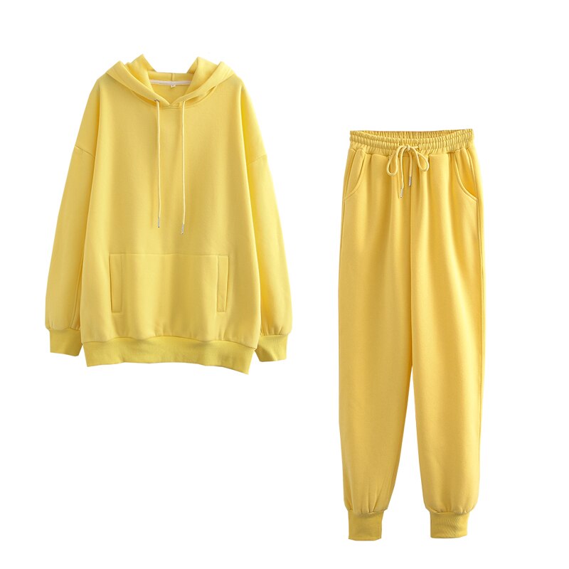 FTLZZ 2020 New Autumn Winter Women Thick Fleece 100% Cotton Suit 2 Pieces Sets Hoodies Sweatshirt and Pants Suits