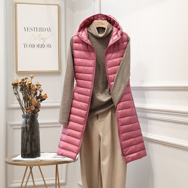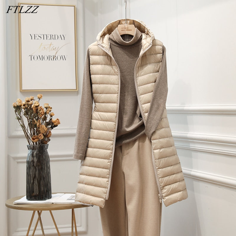 FTLZZ 2020 Winter New Women Ultra Light White Duck Down Jacket Zipper Medium Long Vest Casual Outerwear 4XL Plus Size Down Coat
