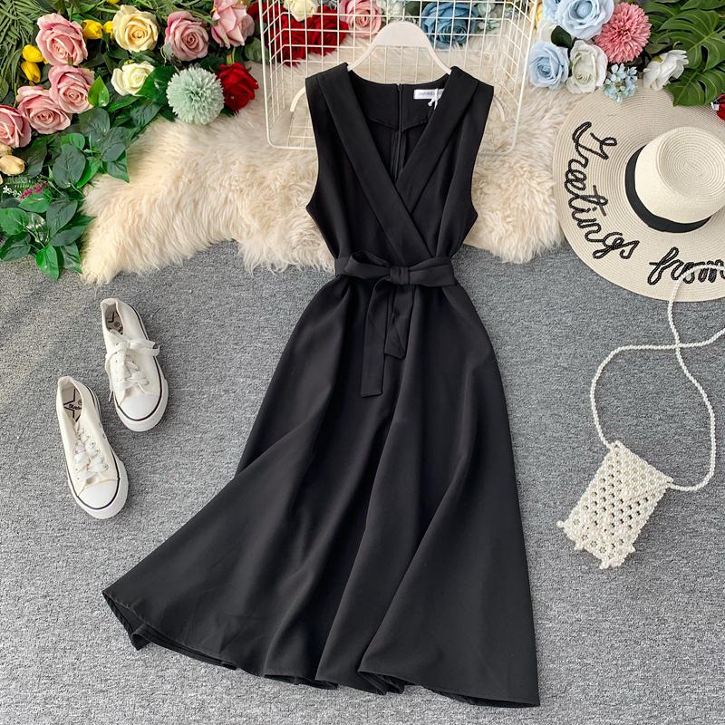 FTLZZ 2021 Slim V Neck Summer Midi Long Bandage Dress Party Tank Sundress Women Casual Elegant A-Line Tie Vestidos