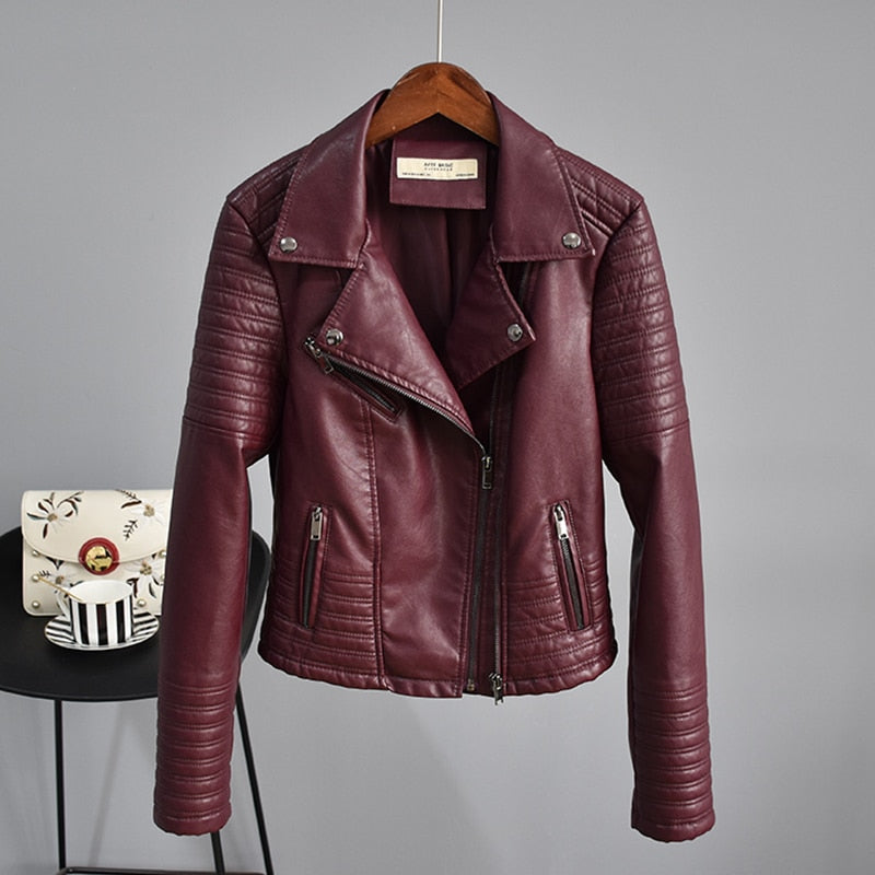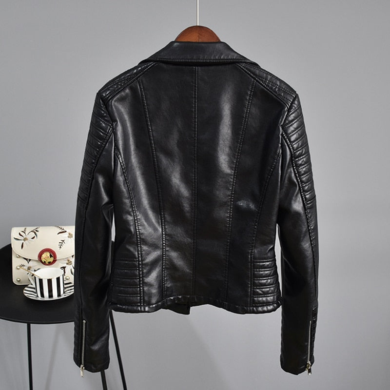 FTLZZ Autumn Faux Leather Jacket Women Turndown Collar Pu Motorcycle Black Punk Coat Female Rivet Zipper Outerwear