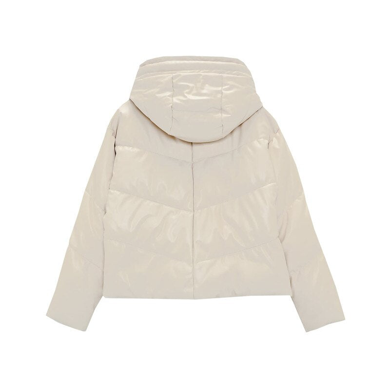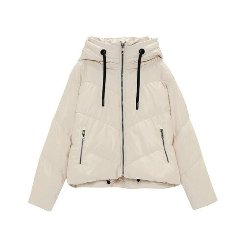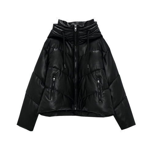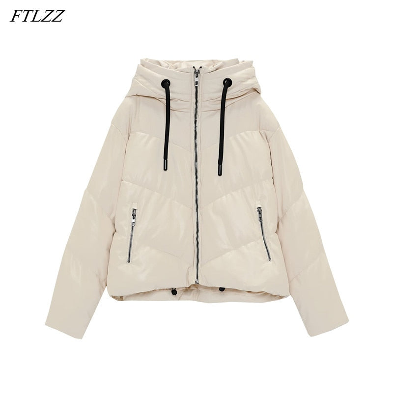 FTLZZ Autumn Winter Women Hooded Zipper Black Faux Leather Cotton Coat Casual Female Thick Warm Short Jacket Windproof Outwear