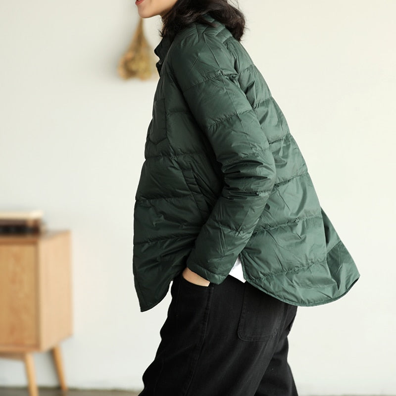 FTLZZ New Autumn Winter Women Turn Down Collar Down Coat Ultra Light 90% White Duck Down Jacket Single Breasted Windproof Parkas
