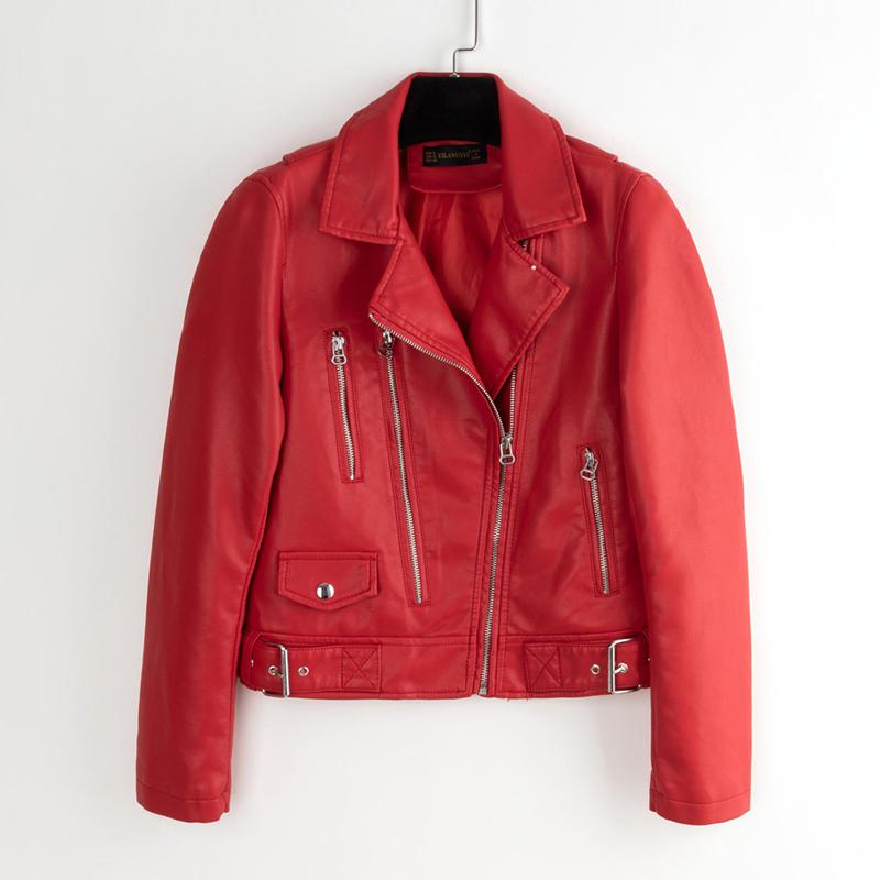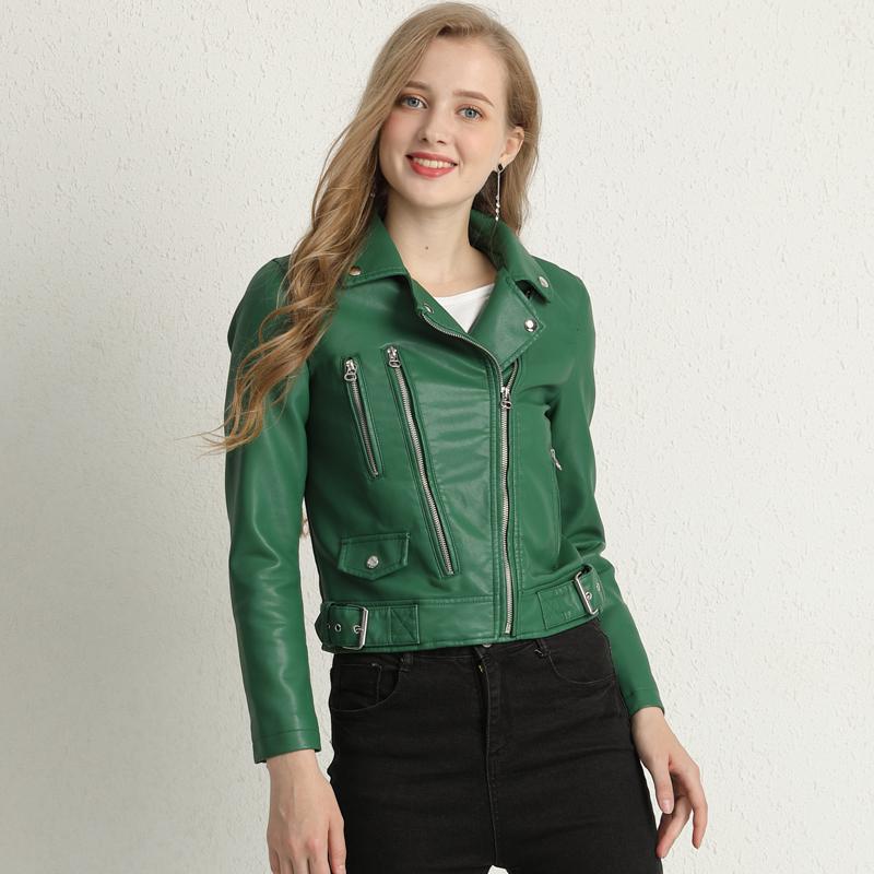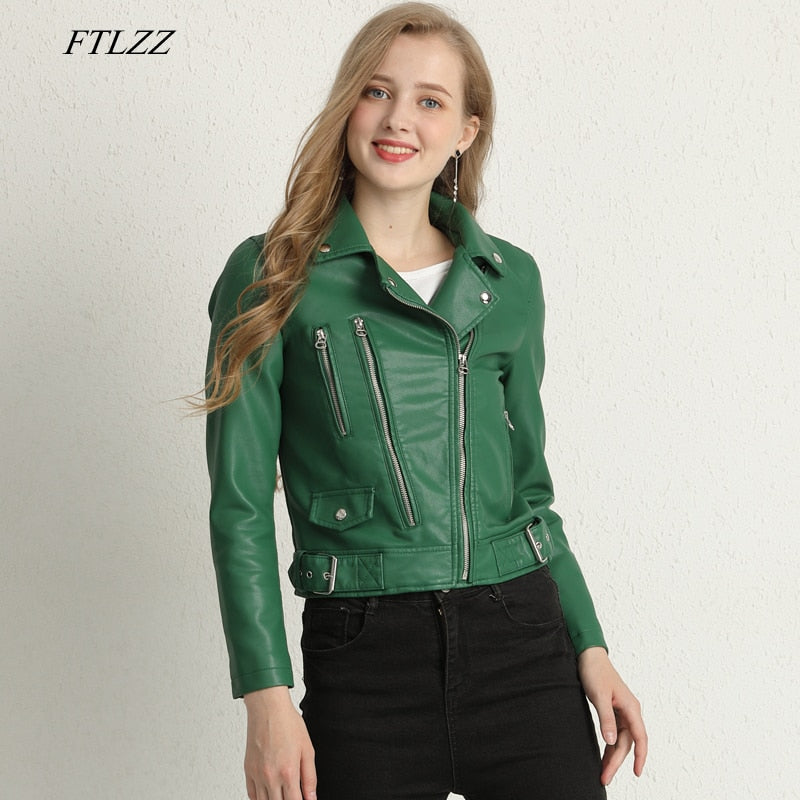FTLZZ New Autumn Women Faux Leather Jackets Zipper Turn-down Collar Basic Coat Faux Soft Pu Motorcycle Green Black Red Outwear