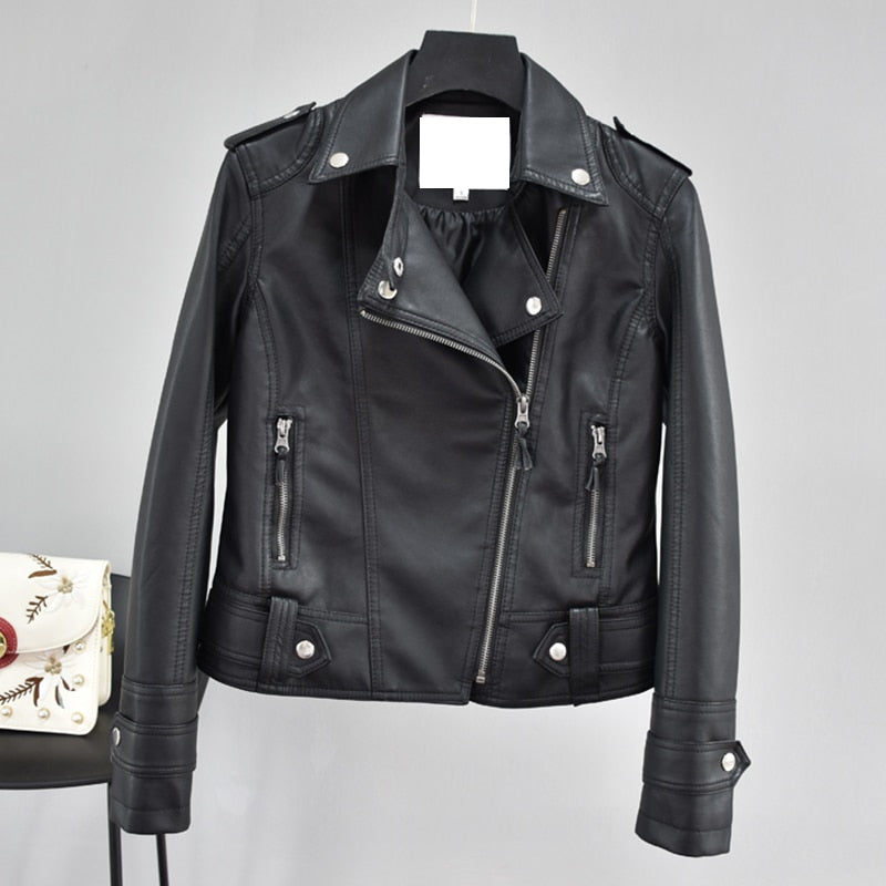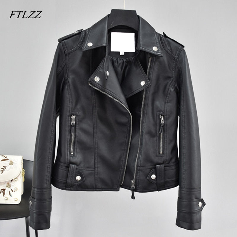 FTLZZ New Spring Autumn Women Short Faux Leather Jacket Slim Fashion Punk Outwear Motorcycle Leather Jackets Casual PU Coat