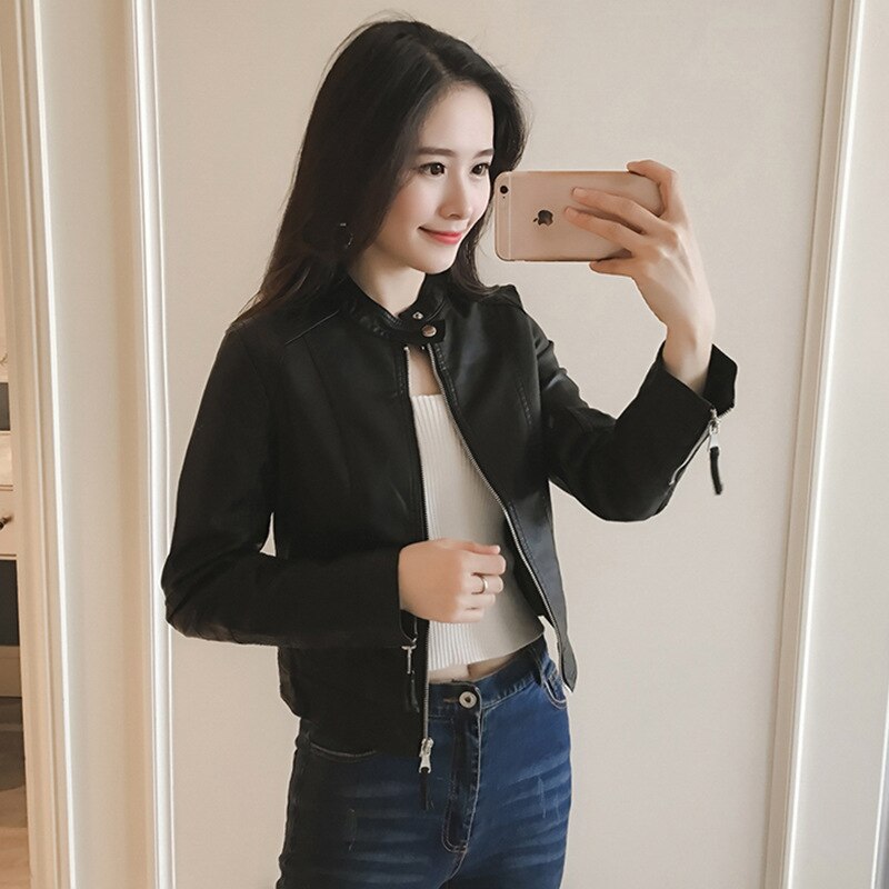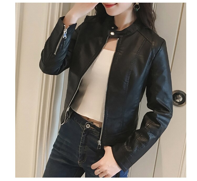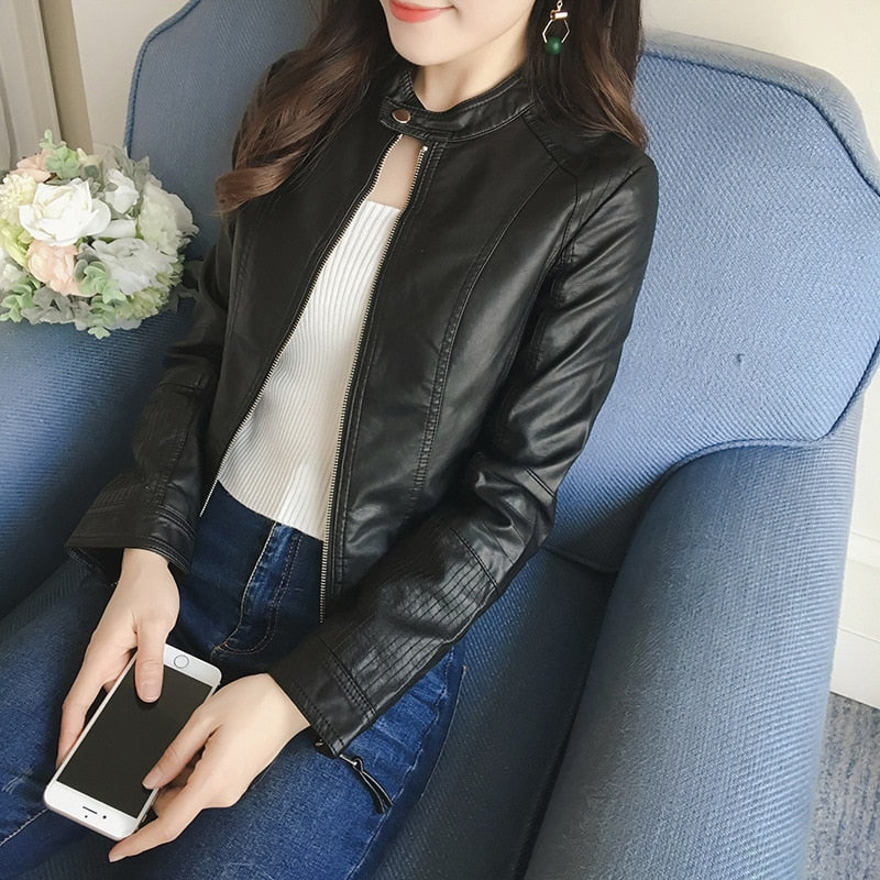 FTLZZ New Spring Faux Leather Jacket Women Slim Vintage Black Soft Motorcycle Short Jackets Lady Bomber Coat Outwear