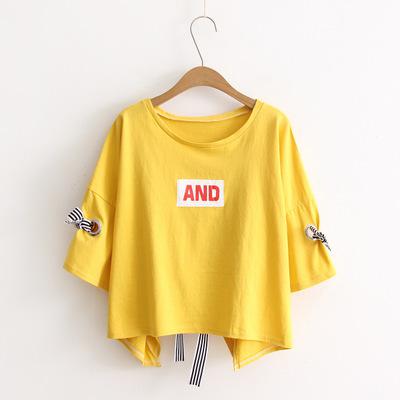 FTLZZ New Summer Crop Tops Women T Shirt Letter Print Short Sleeve Cotton Loose Yellow Black White Short T-shirt