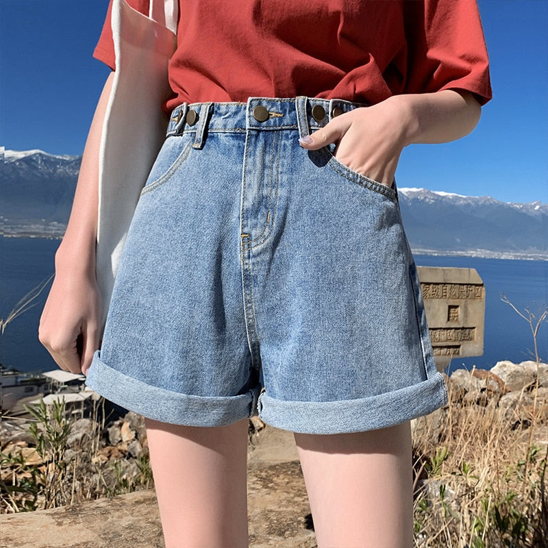 FTLZZ New Summer Women High Waist Wide Leg Denim Shorts Casual Female Loose Fit Streetwear Solid Color Straight Jeans Shorts
