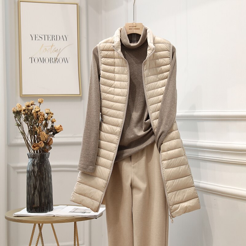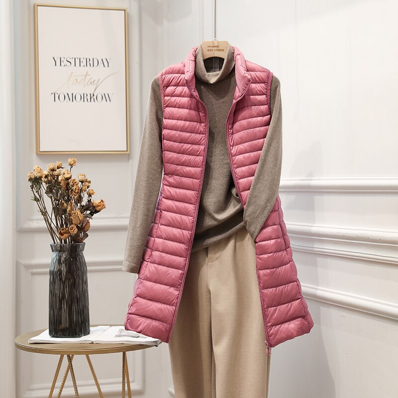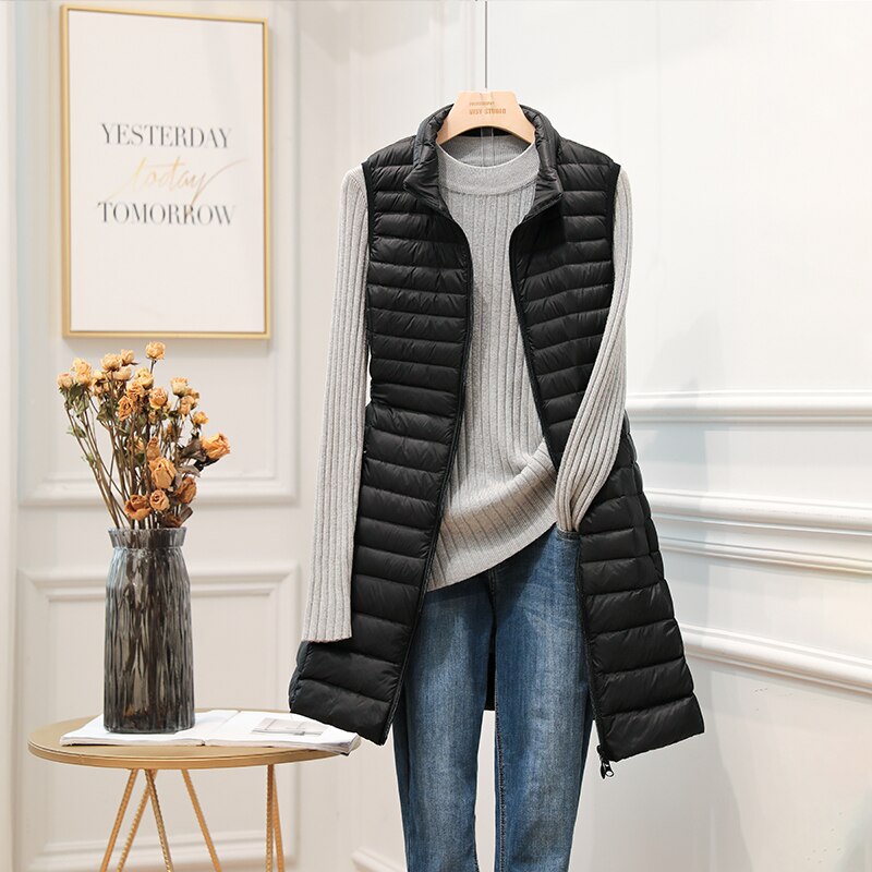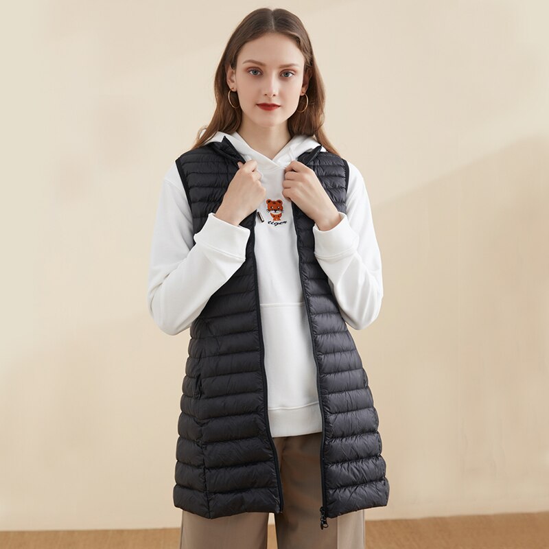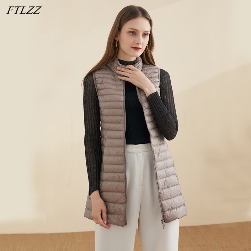 FTLZZ New Winter Women Ultra Light White Duck Down Jacket Zipper Medium Long Vest Stand Collar Outerwear 4XL Plus Size Down Coat