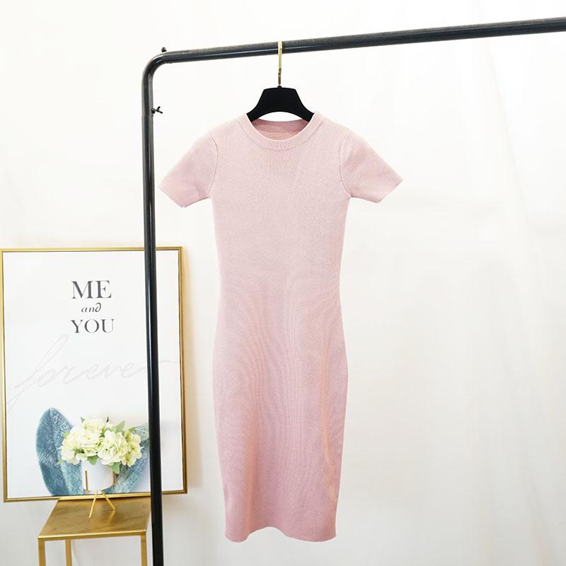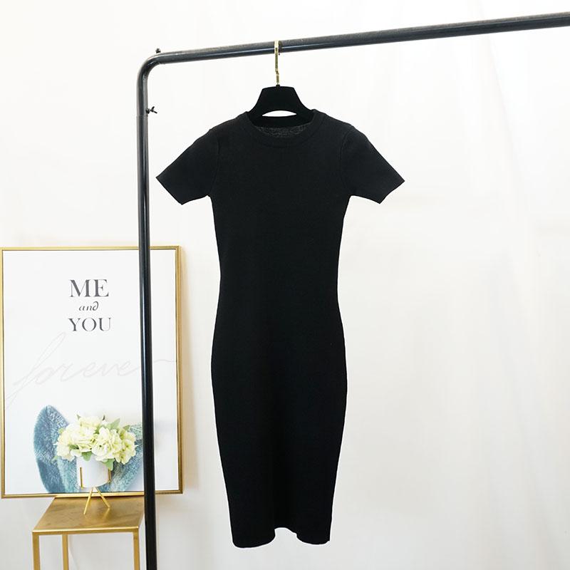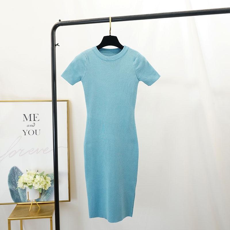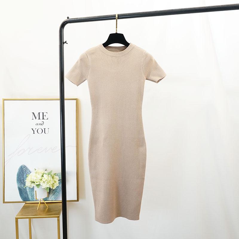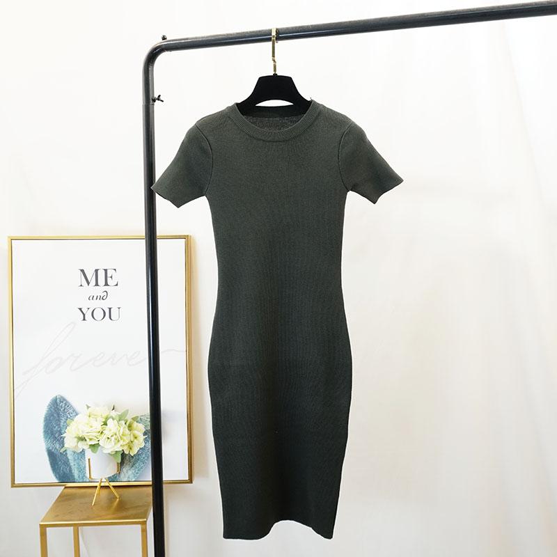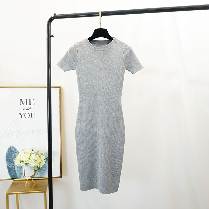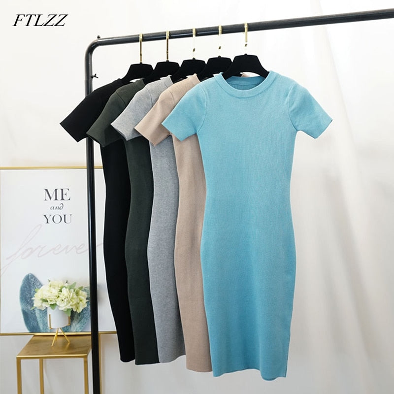 FTLZZ New Women Stretch Knitted Midi Dress Summer Spring Lady Casual O-neck Slim Knitting Bodycon Dresses Vintage Vestidos