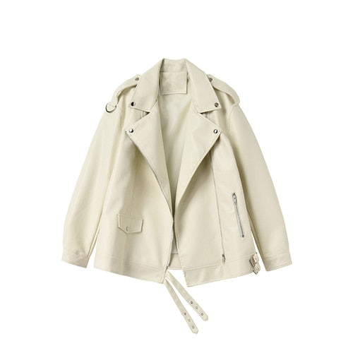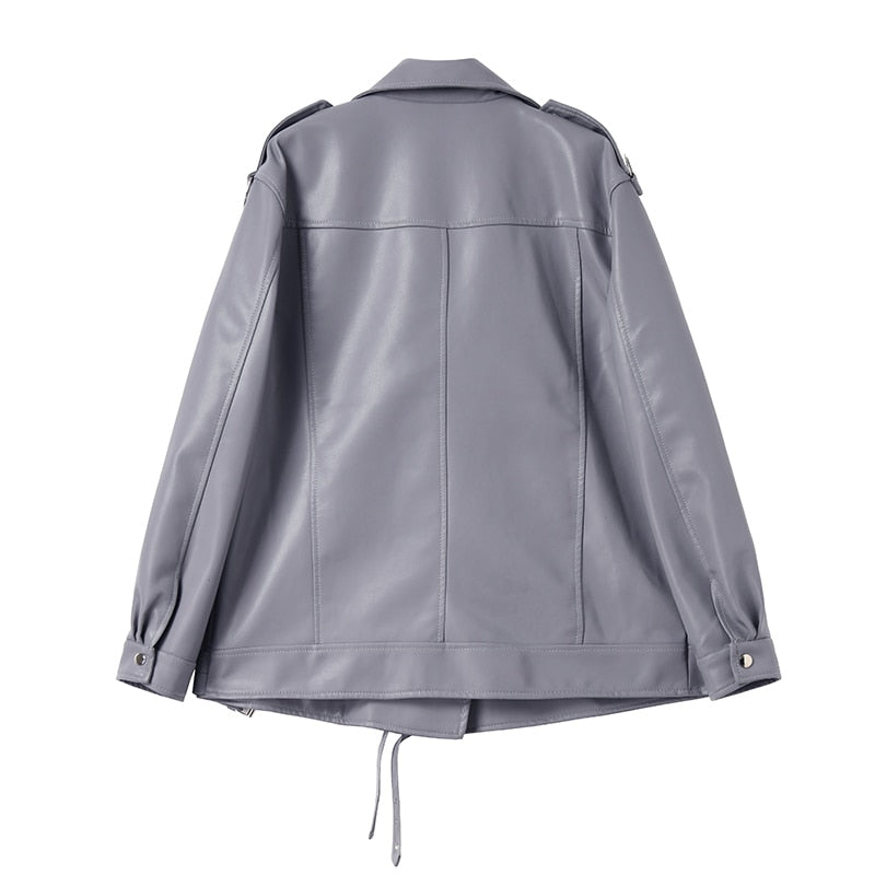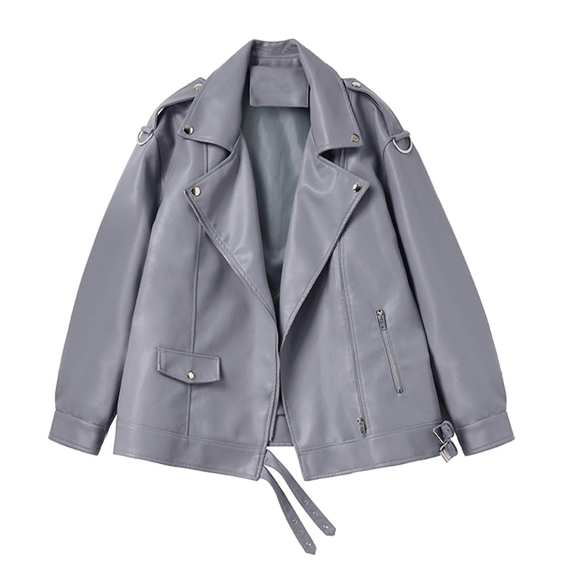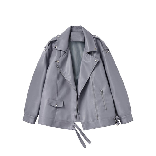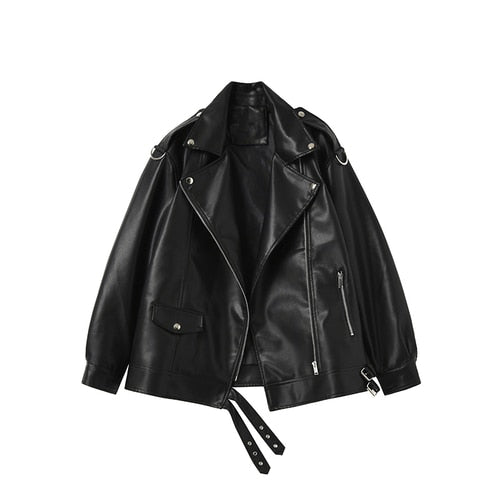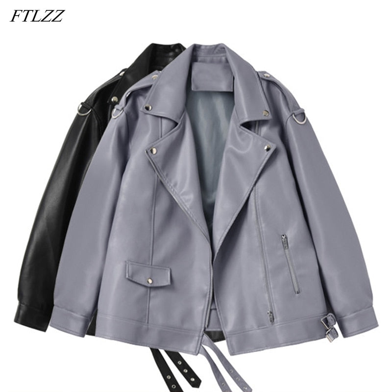 FTLZZ Spring Autumn New Women Soft Faux Leather Jacket Motorcycle Zipper Loose Pu Punk Coat Female Rivet Casua BF Style Overcoat