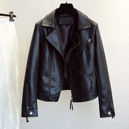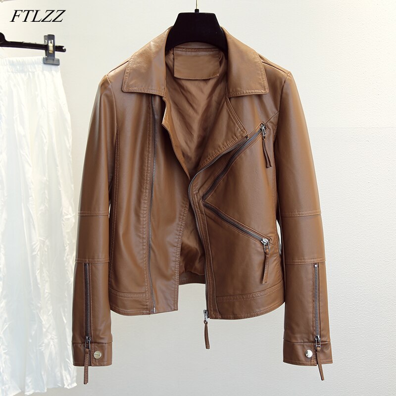 FTLZZ Spring Autumn Vintage Faux Leather Jacket Women Brown Moto Biker  Leather Coats Casual Street Wear Zipper PU Basic Outwear