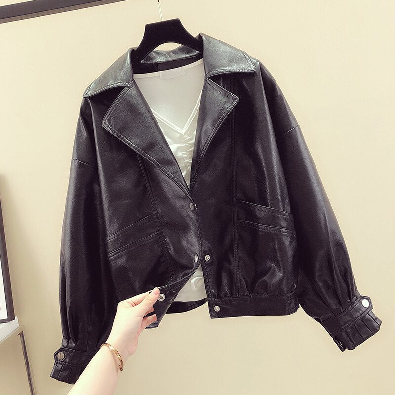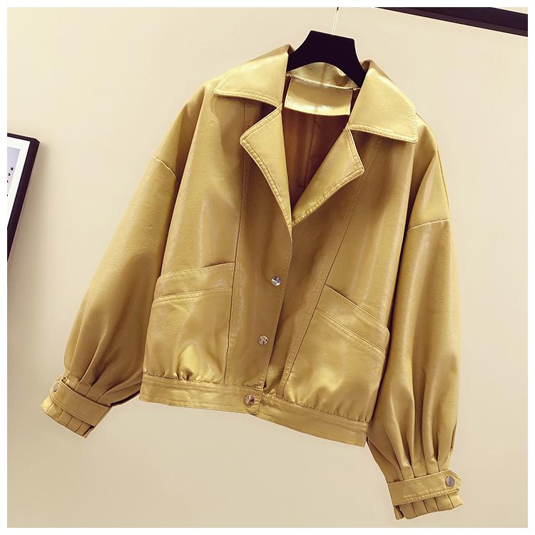 FTLZZ Spring Women White Black Yellow Turndown Collar Single Breasted Biker Jacket Faux Leather Vintage Short Motor Jackets