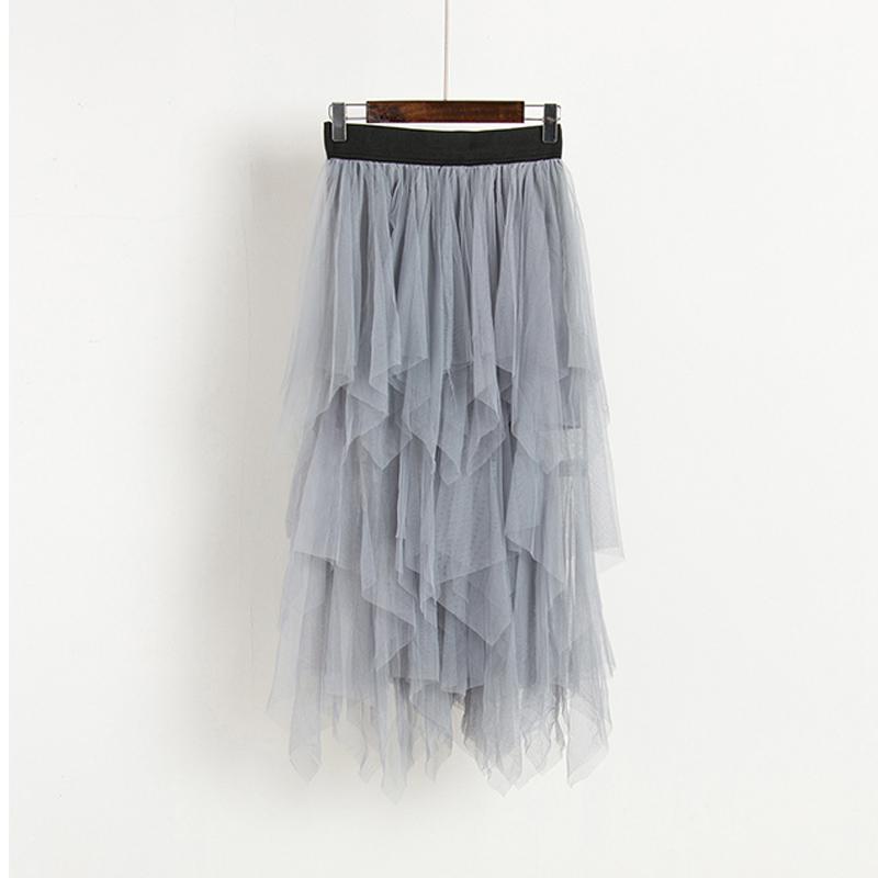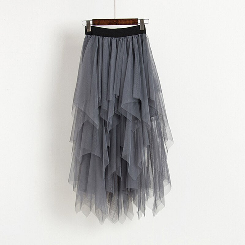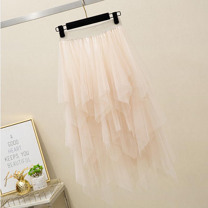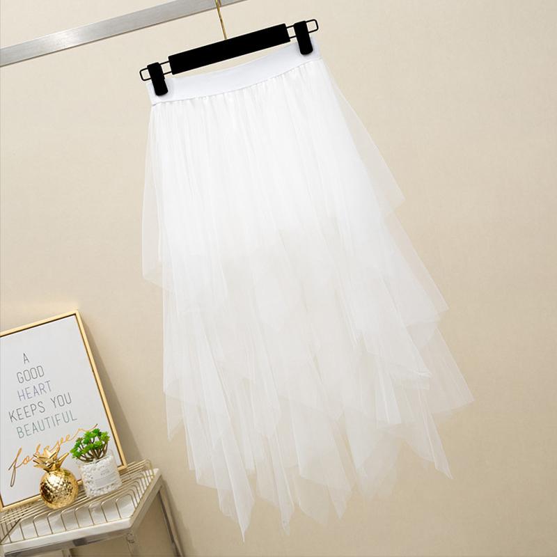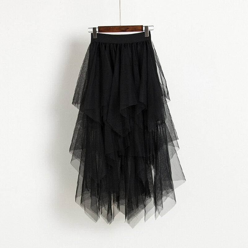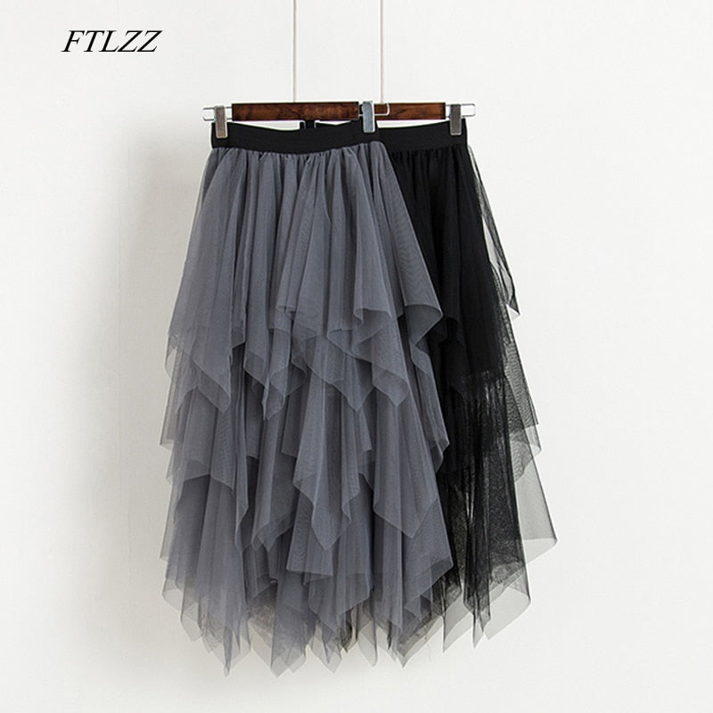 FTLZZ Tulle Skirts Women High Waist Mesh Skirt Hem Asymmetrical Pleated Midi Skirt Female Black Pink Summer Mid-calf Skirts