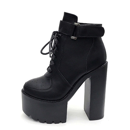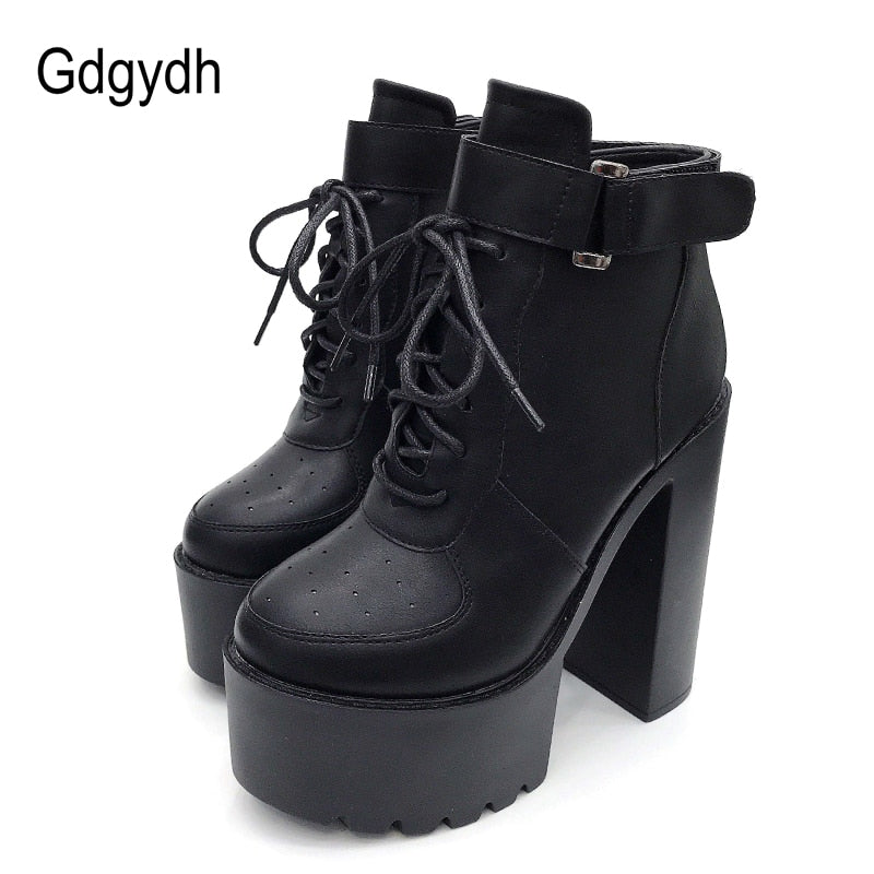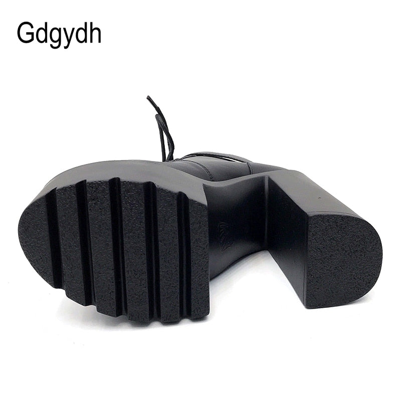 Gdgydh Hot Sale Russian Shoes Black Platform Boots Women Zipper Autumn High Heels Shoes Lace Up Ankle Boots White Rubber Sole