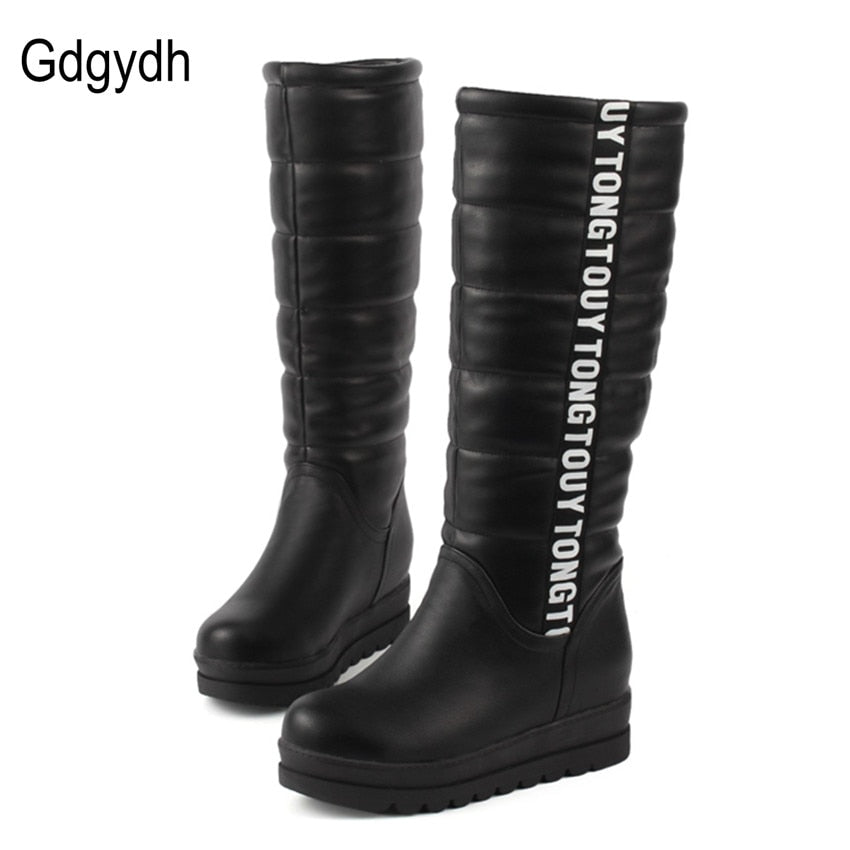 Gdgydh Winter Women Shoes Knee high Boots Female Elevator Flat Thermal Velvet Snow Boots Platform Cotton-padded Shoes Size 34-43
