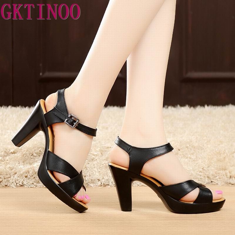 GKTINOO Fashion Genuine Leather Sandals 2021 New High Heel Summer Shoes Gladiator Open Toe Platform Sandals plus size