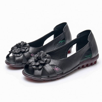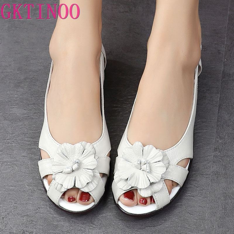 GKTINOO Flower Open Toe Summer Sandals Hollow Soft Genuine Leather Women's Shoes Flat Comfortable Fashion Sandals Large Size
