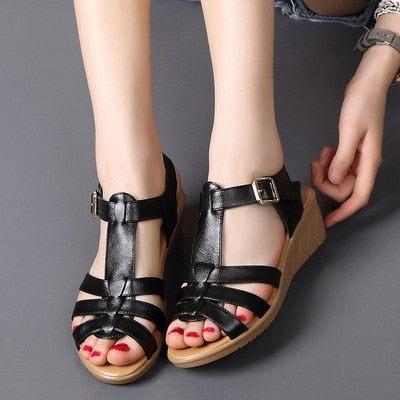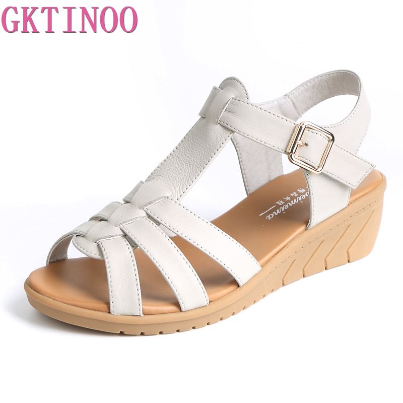 GKTINOO New Summer Classic Genuine Leather Wedges Sandals Women Gladiator Sandals Female Platform Shoes Sandalias Mujer