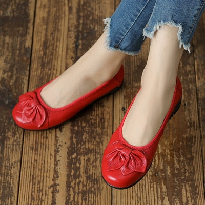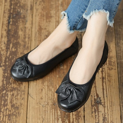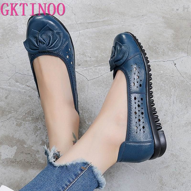 GKTINOO Summer Genuine Leather Shoes Women Butterfly-knot Loafers Women Flats Ballet Autumn Casual Flat Shoes Woman Moccasins