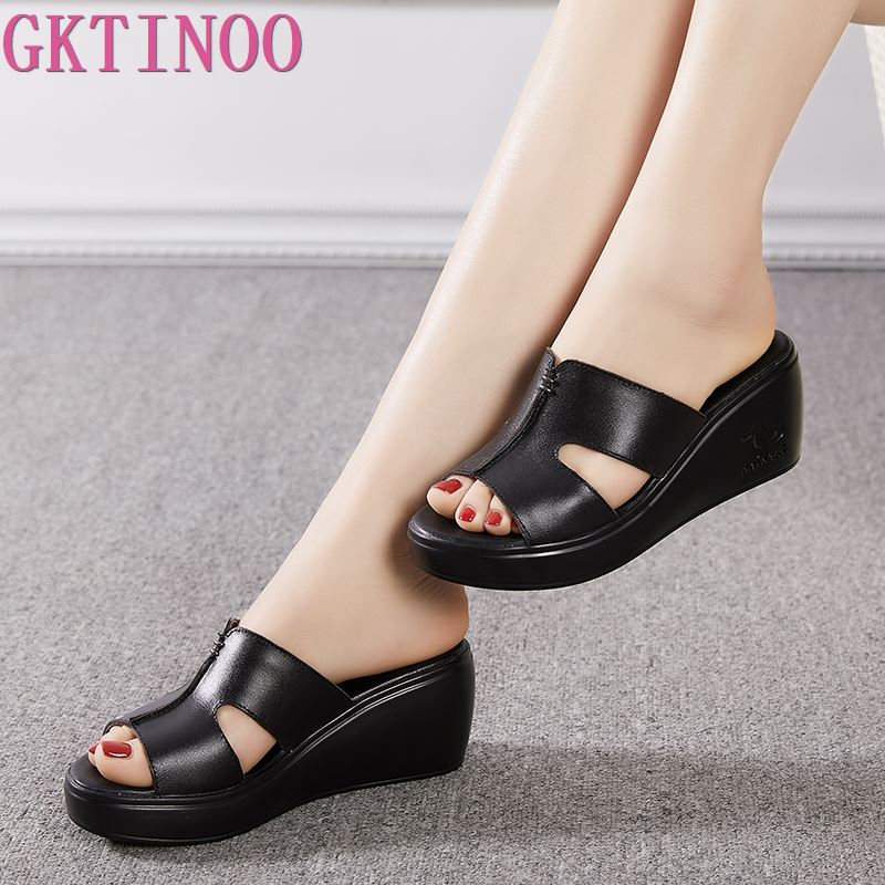 GKTINOO woman platform flip flops 2021 new summer women genuine leather slipper high heel shoes women slippers big size