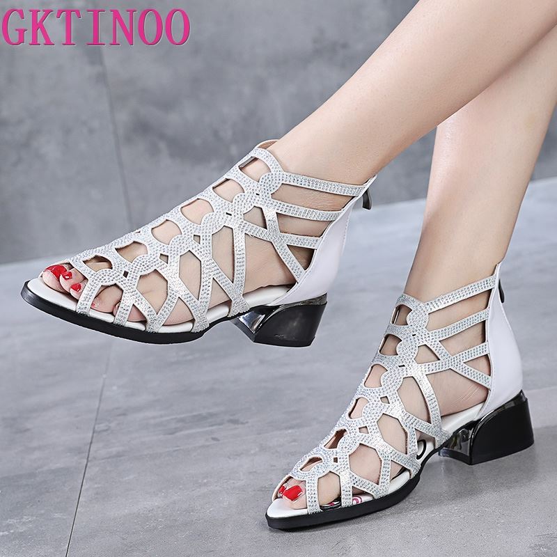 GKTINOO Woman Sandals Shoes Sandalias Mujer 2021 Summer Genuine Leather High Heels Slip on Bling Fashion Gladiator Shoes Women