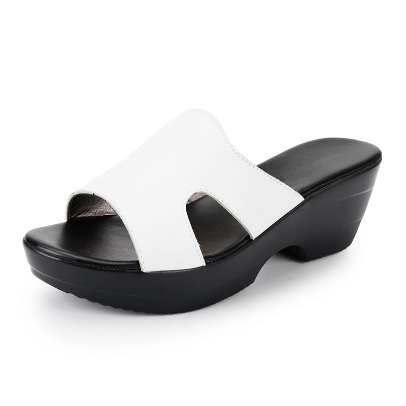 GKTINOO Women Slipper Sandals Wedges Platform Genuine Leather Peep toe Female Sandals Ladies clogs Summer Shoes Plus Size 41 42