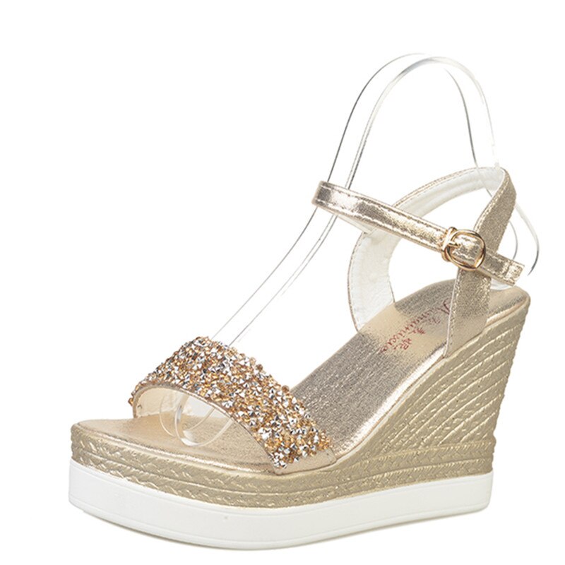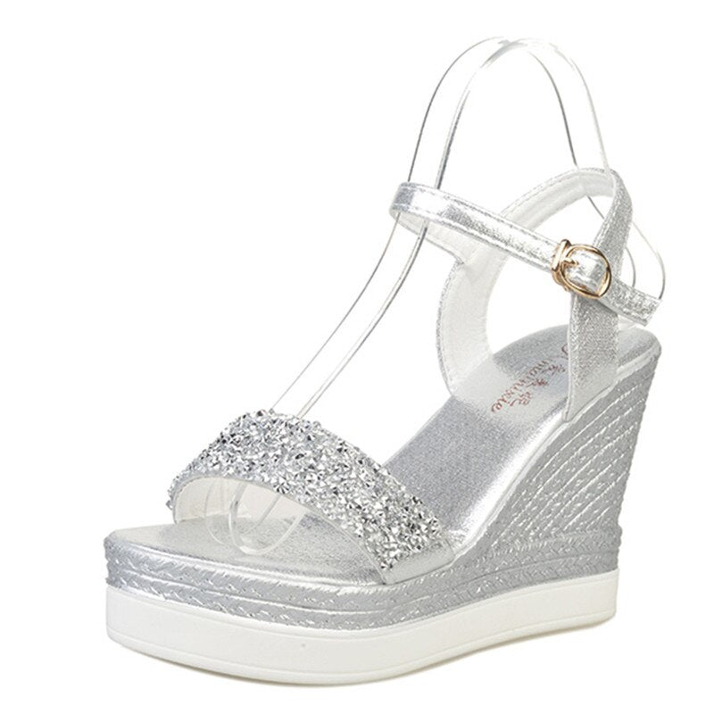 High Heels Sandals Women Shinning Glitter Silver Gold Platform Wedges 2020 Summer Ladies Open Toe Casual Shoes Pumps Hot
