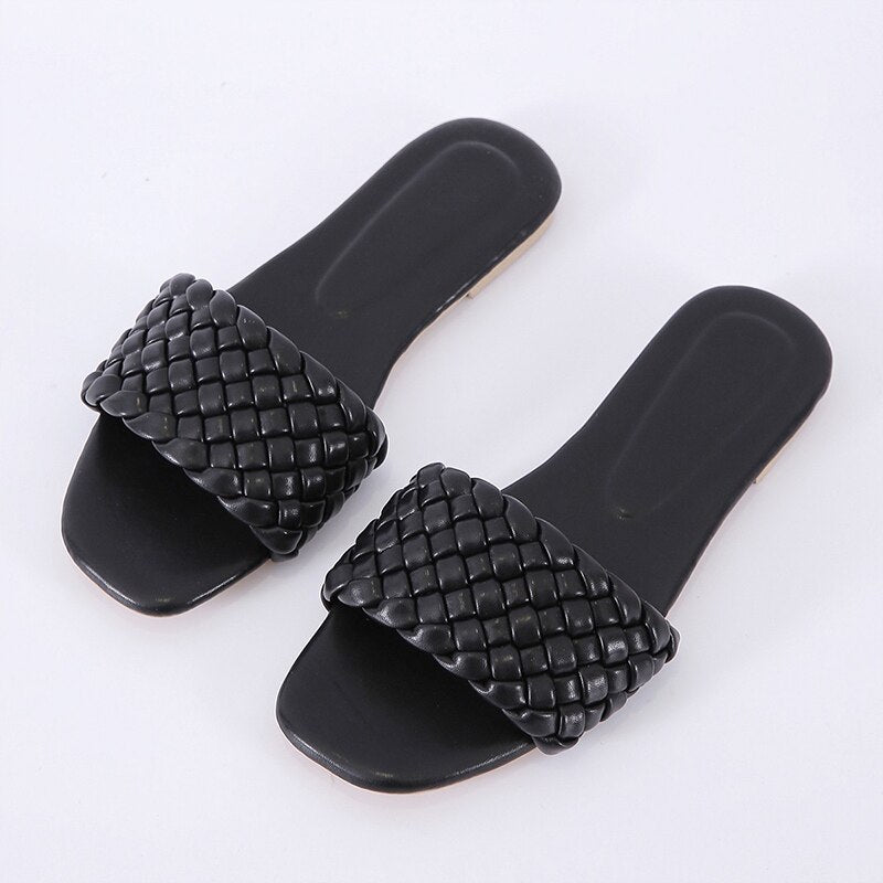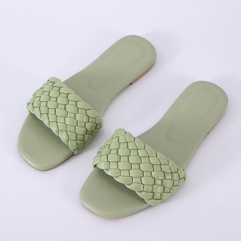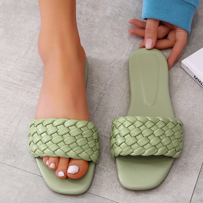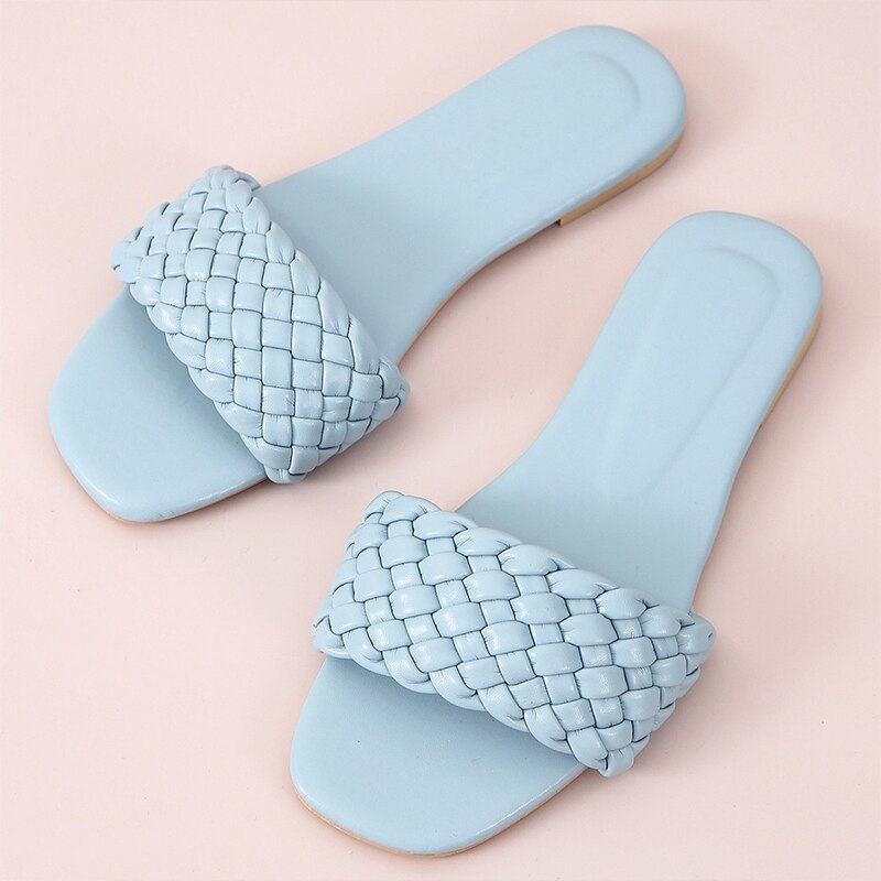 High Quality Casual Women Slipper Weave Home Ladies Flat Sandal Summer Comfortable Round Head Toe Solid Color Daily Women Shoes