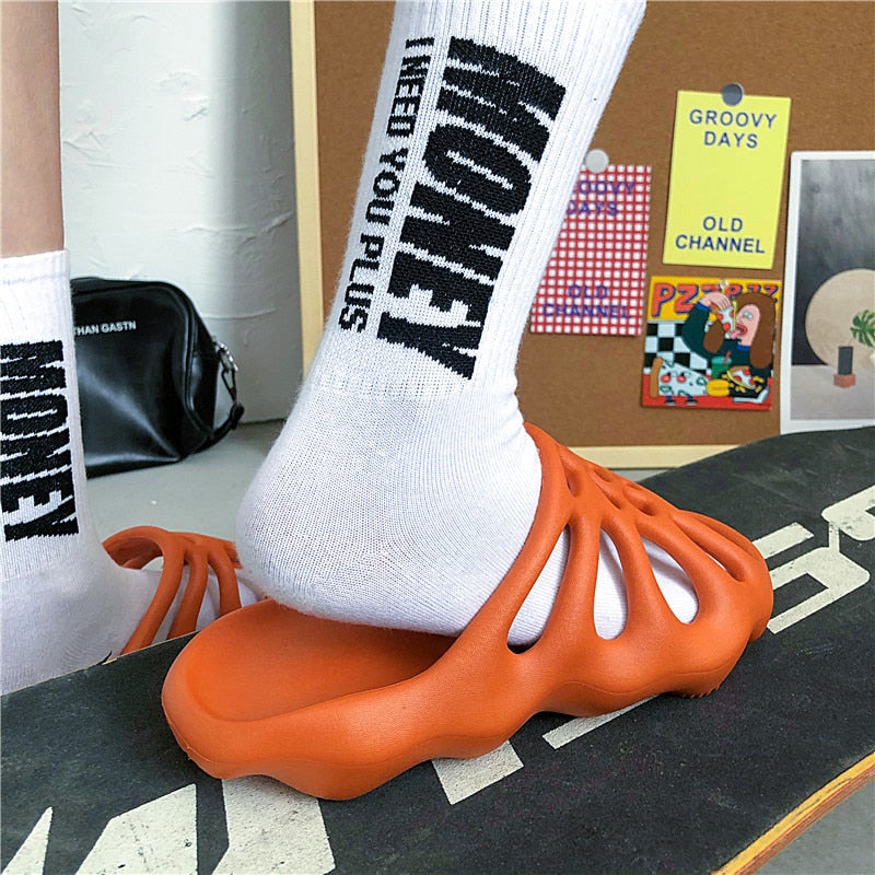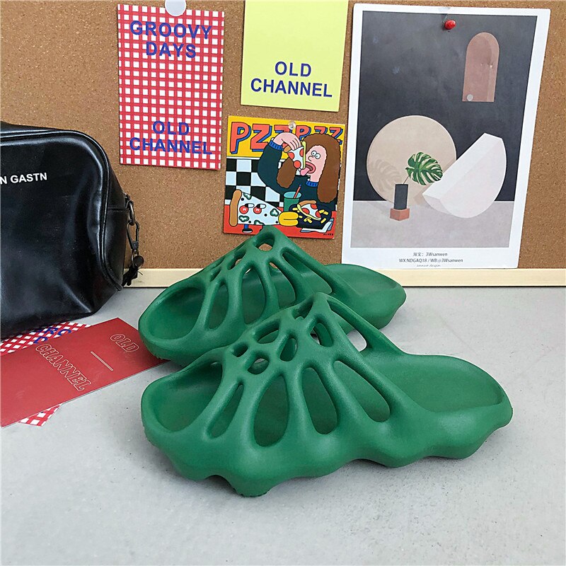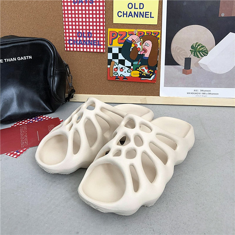 Hollow Thick-Soled Slippers Women 2021 Summer Men Fashion Beach Slippers Soft EVA Indoor Non-Slip Slippers Open-Toed Flip-Flops
