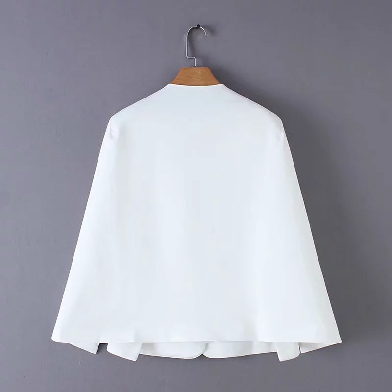 Hot Sale Women Split Design Cloak Suit Coat Office Lady Black White Jacket Fashion Streetwear Casual Loose Outerwear Tops C613