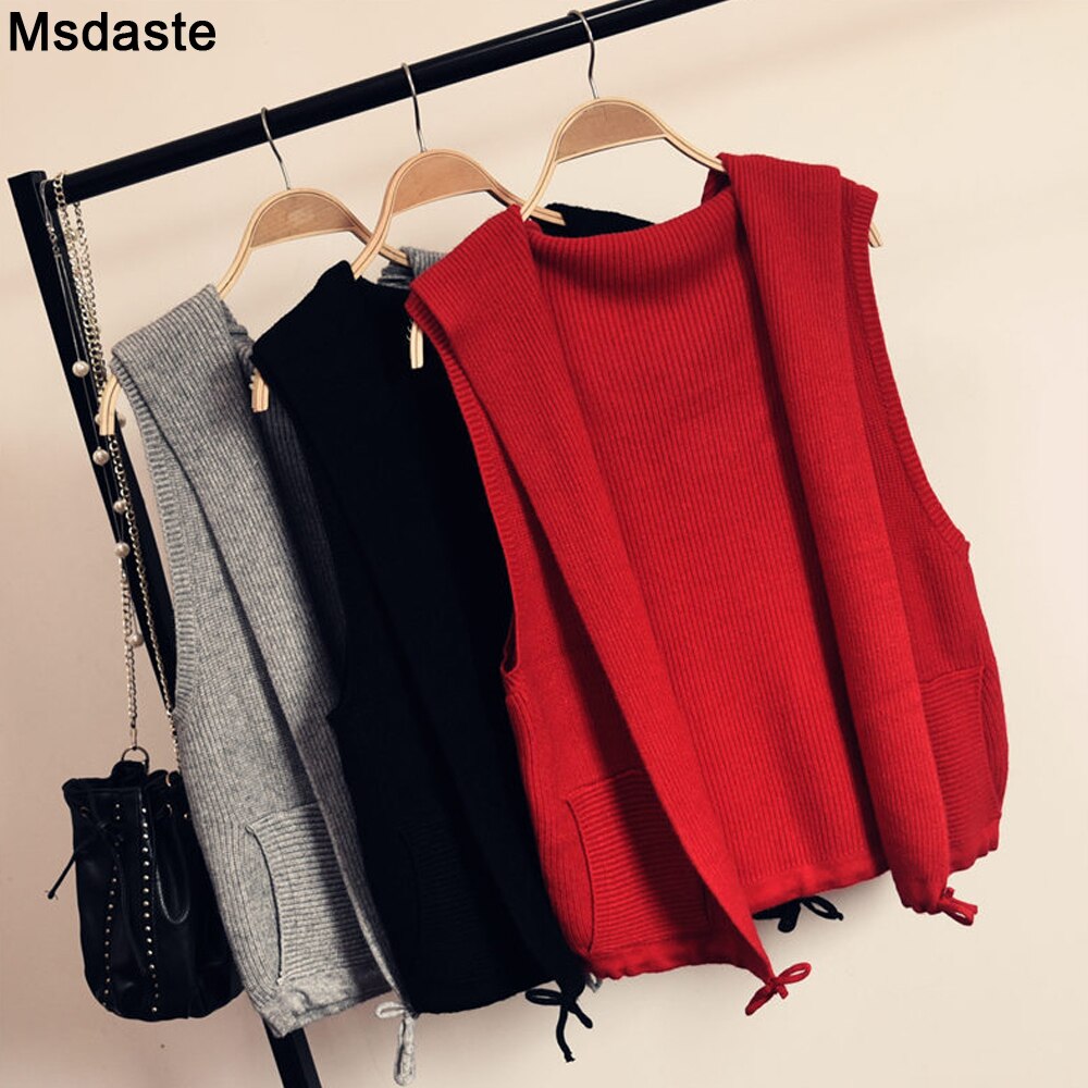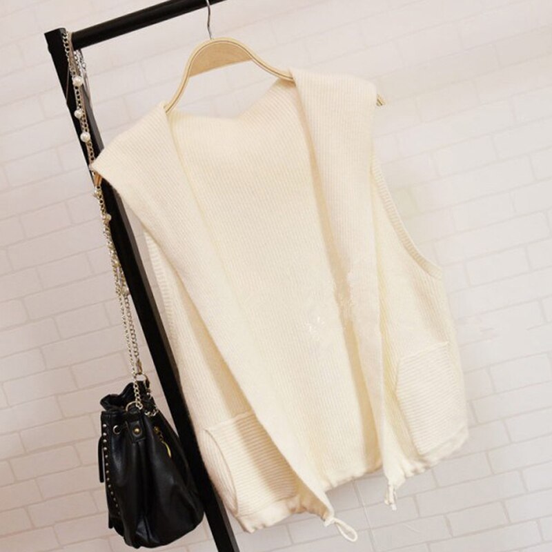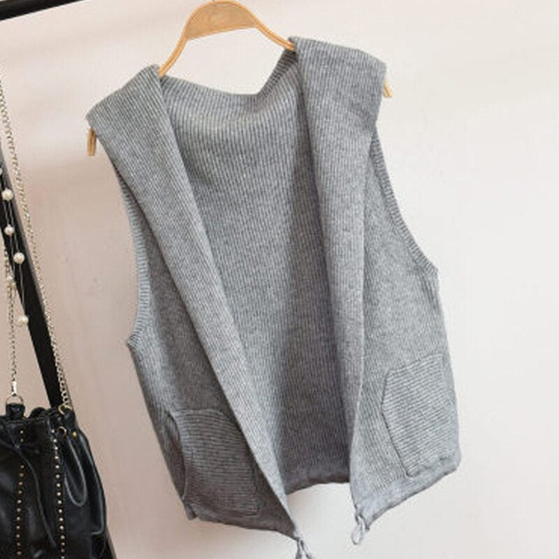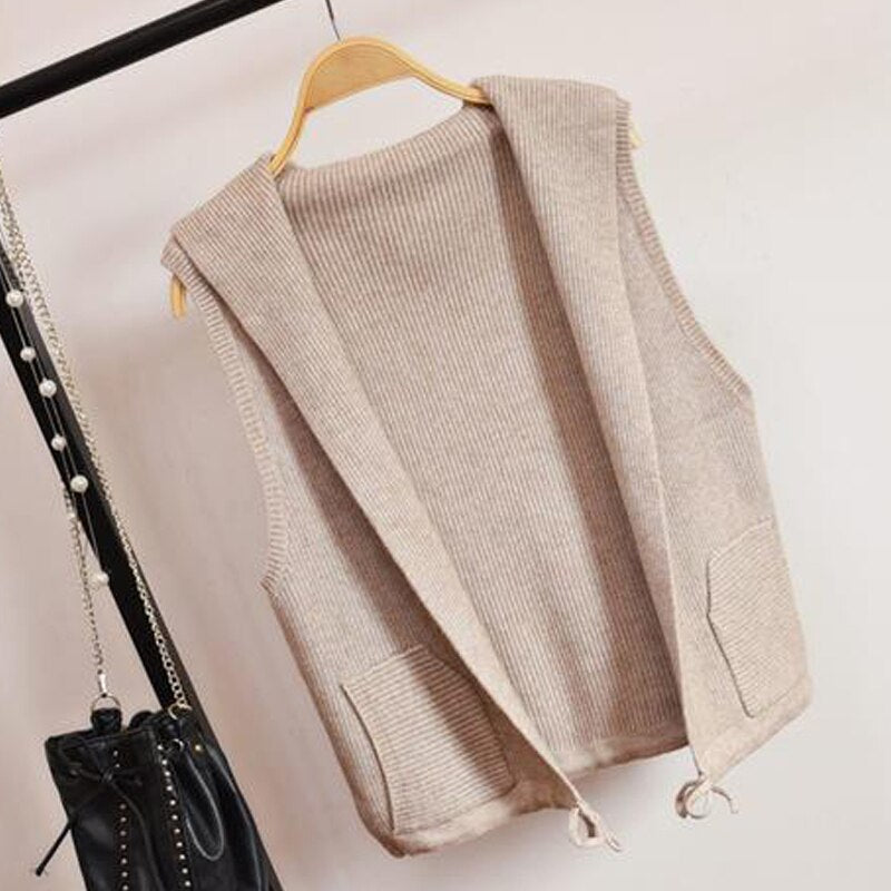 Knitted Sweater Vest Cardigan Shrugs Top Hooded Short Sleeveless Shrug Outerwear Autumn Fall Sweaters Women Casual Female Tops