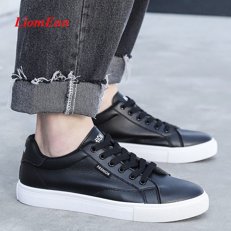 Leather Women's Shoes 2021 Spring White Black Sneakers Women Sport Shoes Flats Tennis Casual Men vulcanize Shoe Large Size 35-44