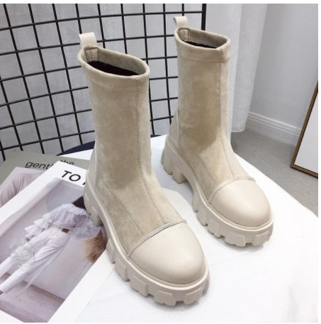 Martin boots woman 2021 new ladies casual stretch fabric socks boots fashion Cross-tied women shoes platform boots gothic women