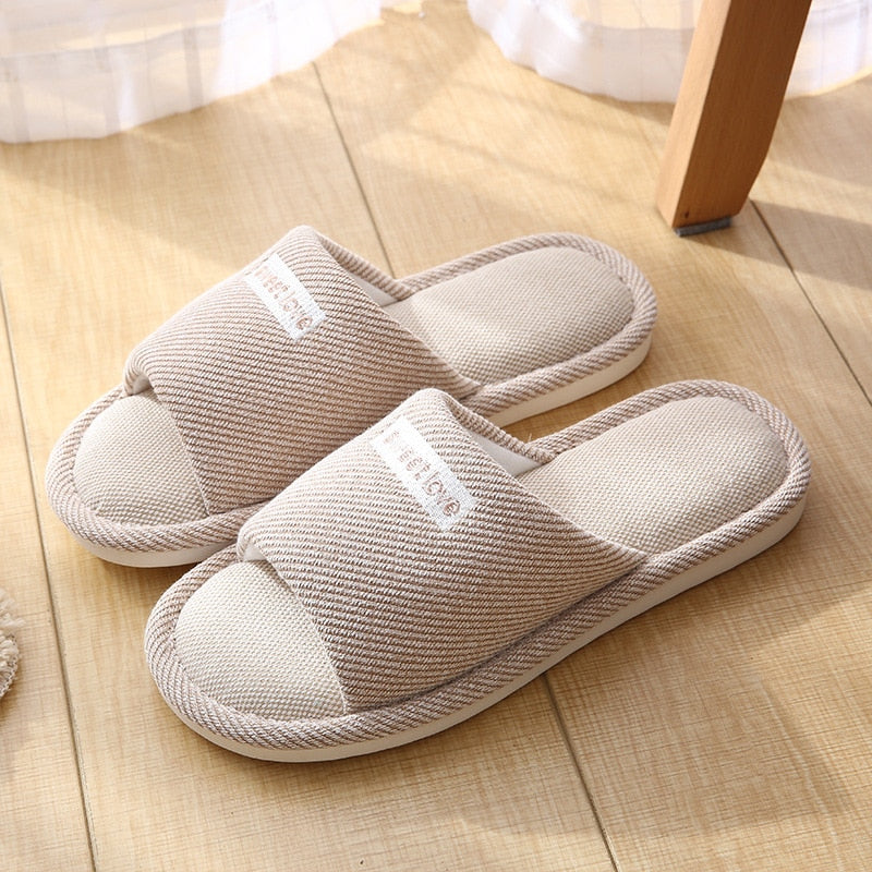 Men and Women Home Linen Slippers Home Indoor Non-slip Soft Bottom Summer Sandals Couple Four Seasons Cotton and Linen