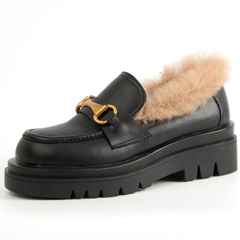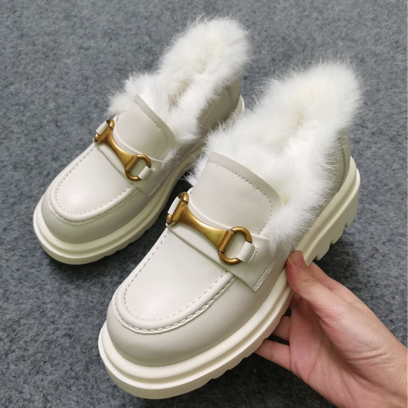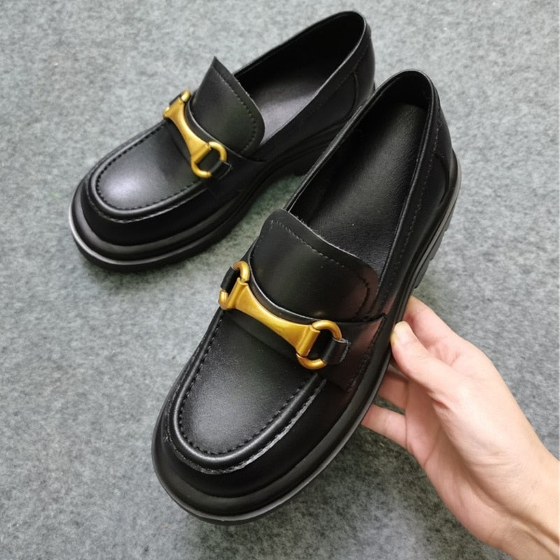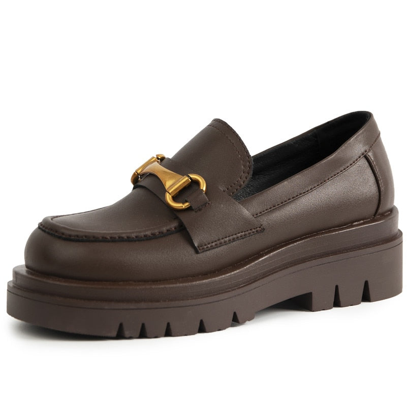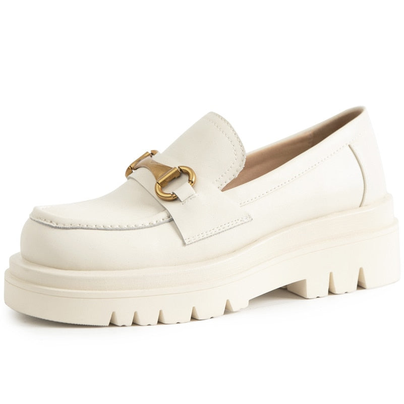 Meotina Pumps Genuine Leather Loafers Shoes Women Platform High Heels Metal Decoration Thick Heel Ladies Footwear White Size 43