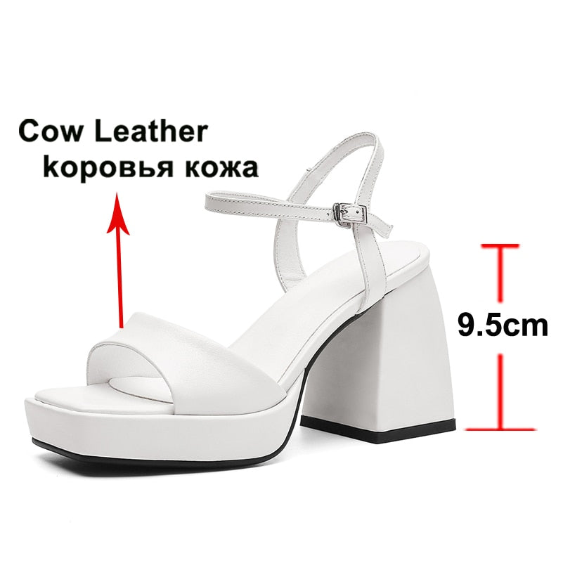 Meotina Women Shoes Genuine Leather Super High Heel Platform Thick Heel Sandals Square Toe Ladies Footwear Fashion Summer White