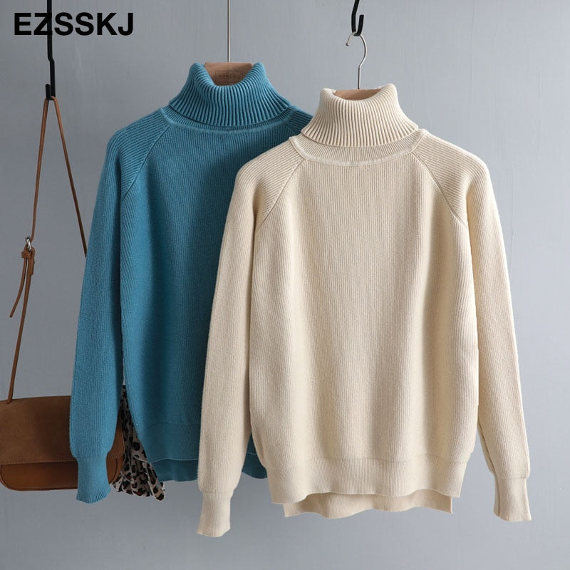 New casual thick Autumn Winter turtleneck oversize Sweater Pullover Women warm chic female loose Knitted Basic Sweaters pull