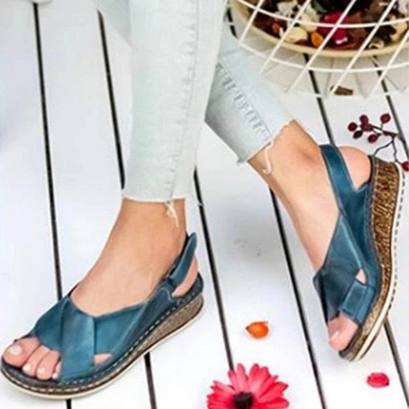 New Summer Sandals For Women Shoes Retro Slip On Cork Leather Ladies Sandals Beach Slipper Gladiator Sandals Women Flip Flops